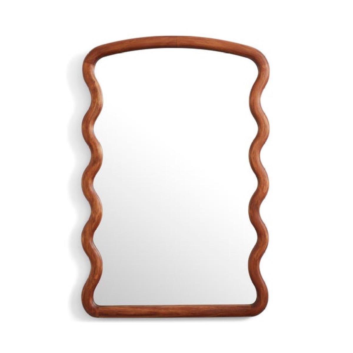 * Warm toned wood frame * Wiggle design * Rectangular wall mirror * High quality finish Add warmth and natural tones to your decor with this Cleo Wood Wiggle Wall Mirror. The wiggle shaped frame is great for introducing interest and movement to your interior, and the mirror glass will bounce light back into the room for a sense of space and depth. Please note: This mirror is not suitable for bathrooms.