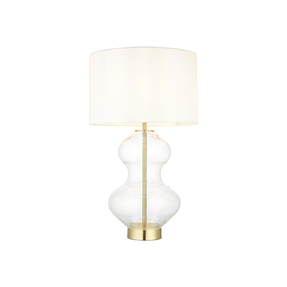 This boutique hotel style lamp is designed to infuse your home with the sophistication and allure of a five-star retreat, featuring a unique curved glass lamp base and a simplistic white fabric shade that offers a soft glow.