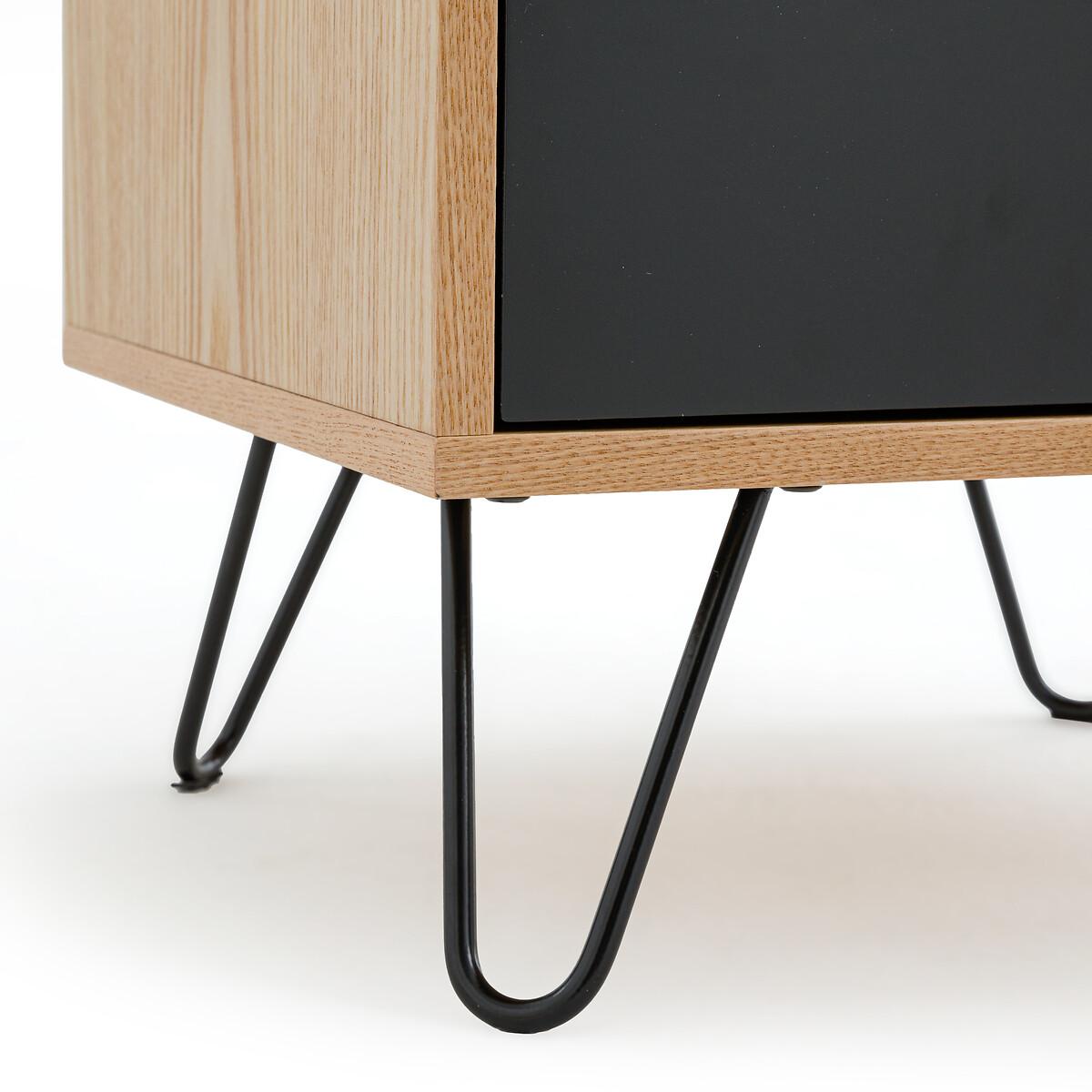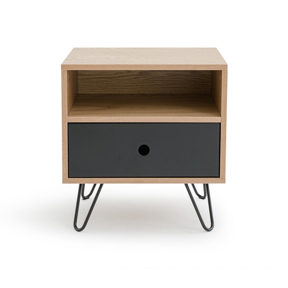 A contemporary design with clean lines: the Cleon bedside table combines light wood and metal legs. It offers a drawer and a compartment to store your books and personal effects. Decorative and functional.
