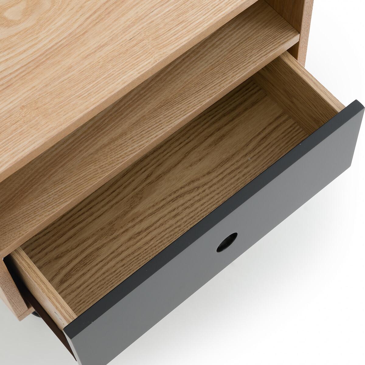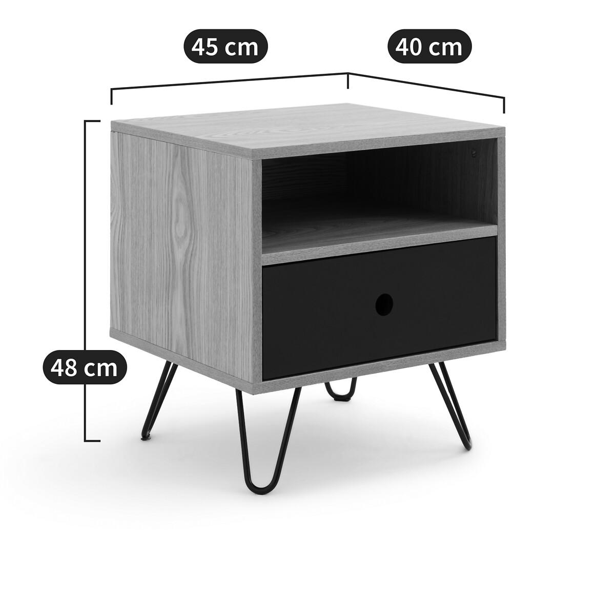 I love the mix of natural wood and metal in this bedside table - it’s a great way to introduce a touch of warmth and industrial edge to your bedroom. Its compact size makes it perfect for urban or minimalist interiors, but it also adapts well to Scandi or contemporary schemes. The Ash veneer brings subtle texture, while the dark drawer adds a sleek contrast, making it easy to style with both colourful accessories or monochrome bedding. Tip: keep the top clear for everyday essentials, and use the drawer or open shelf for organising smaller items. Pairing it with tapered or hairpin-legged furniture can enhance its mid-century vibe, but it also works wonderfully with plain, modern pieces for a more understated look.