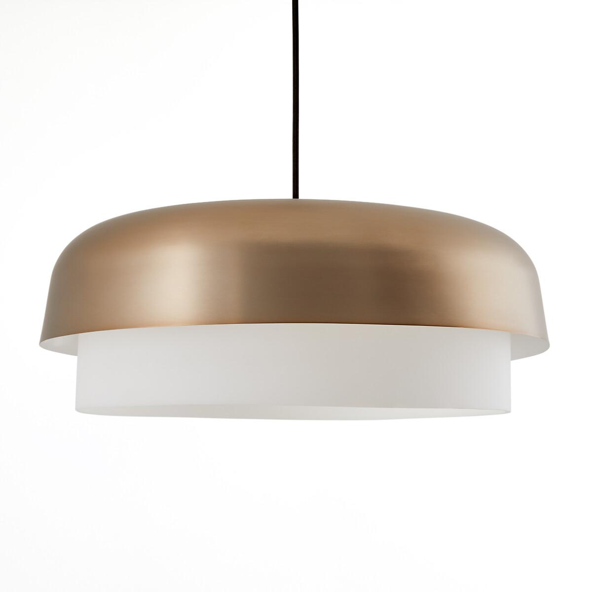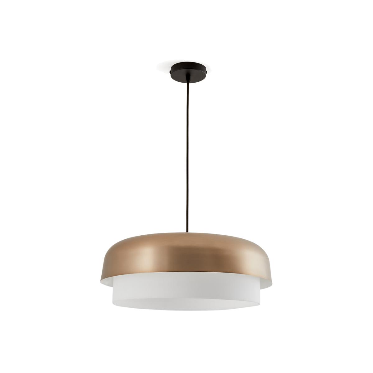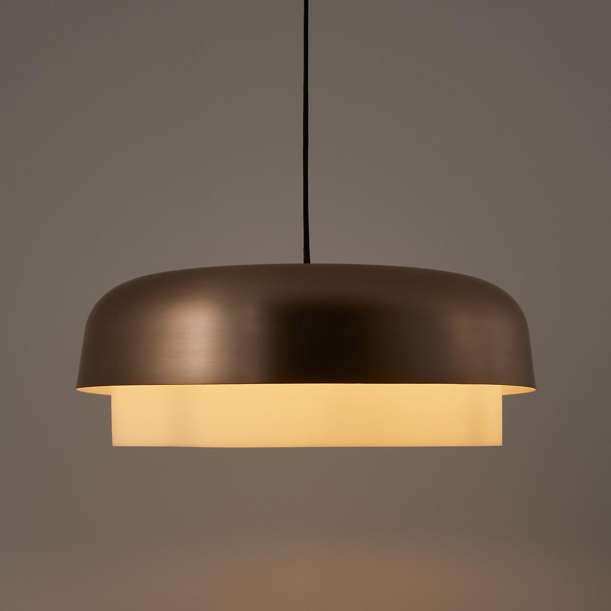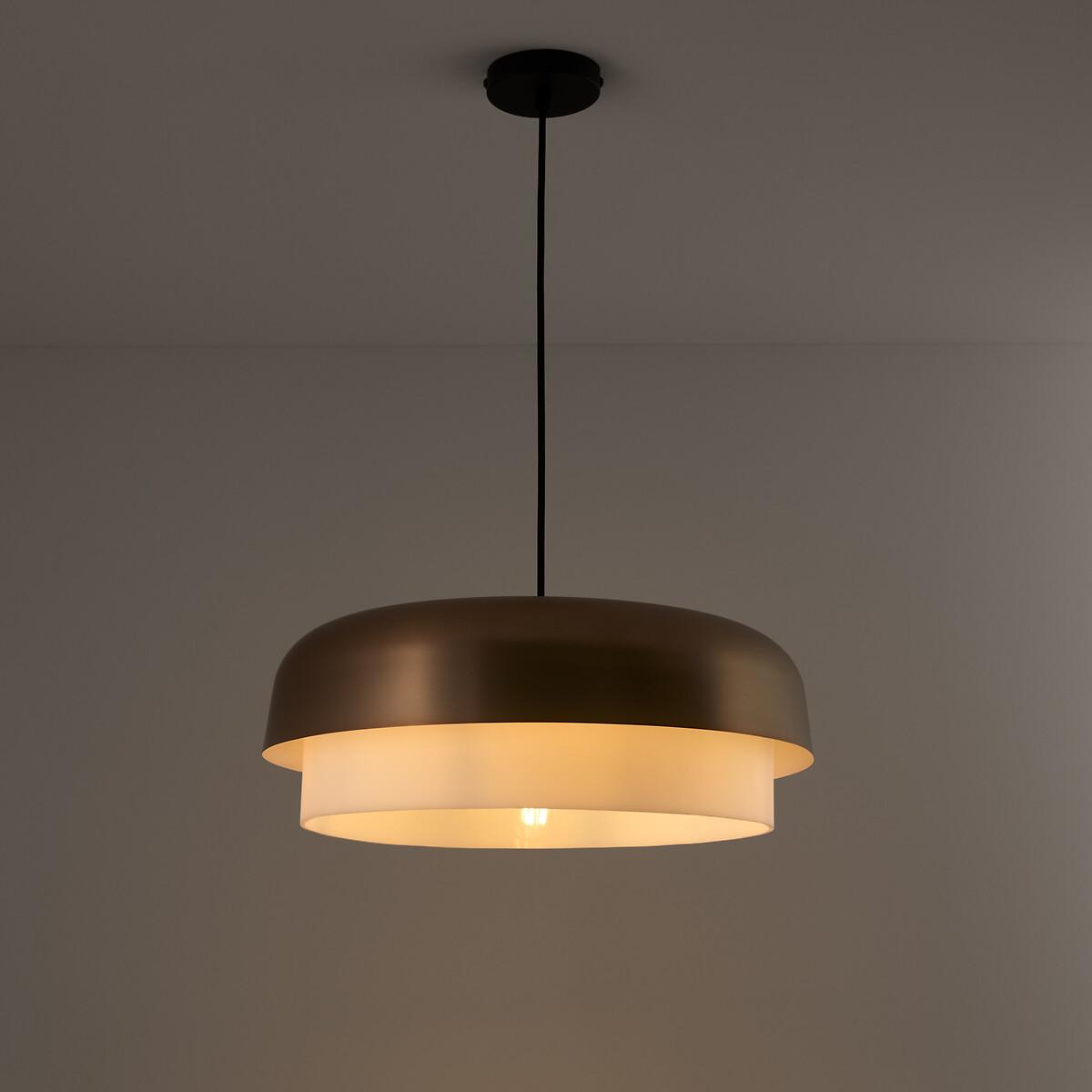 Sculptural forms that combine 20th century influence and contemporary inspiration. Marble and mocha-finish metal unite for unique and timeless lighting fixtures. Product Details • Iron with acrylic diffuser • 1 socket for E27/8W bulb (not supplied)Dimensions • Iron lampshade : Diameter 44cm x H11cm • Acrylic diffuser:Diameter 38cm x H14cm • Total cable length: 65cm • Total product height: 70cm • Ceiling plate: Diameter 10cm • Weight: 2.5kg Parcel Dimensions1 parcel • L51 x H51.5 x D23cm • 3.1kg