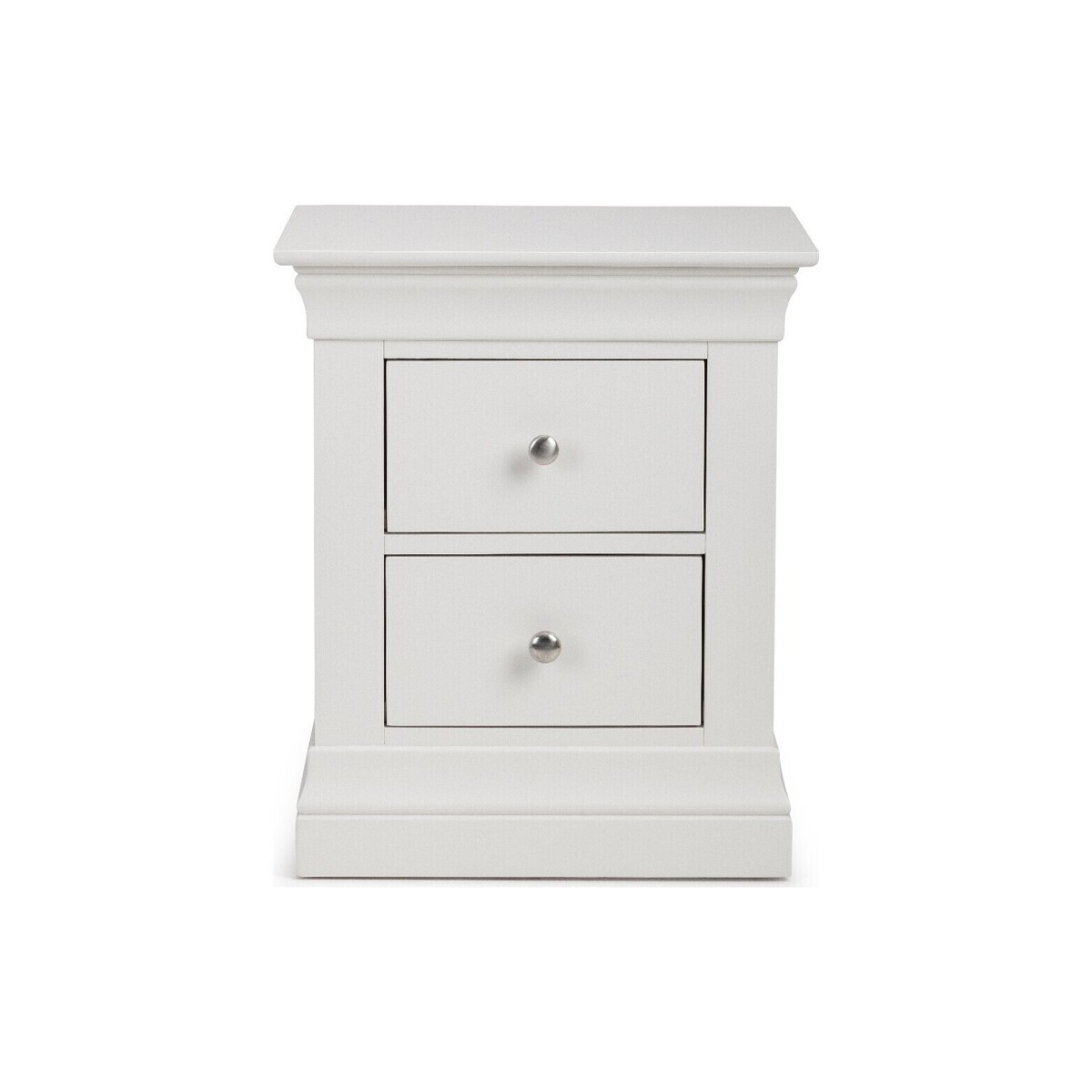 The Clermont 2 Drawer Bedside Cabinet is part of the much larger Clermont Collection by Julian Bowen, bringing simple class to the modern home. Its elegant design incorporates a beautiful white finish with simple clean lines, creating a stylish and French-inspired look. Finished with brushed steel handles, this cabinet is a practical and contemporary choice. Spacious two drawer storage for night-time essentials. Constructed from solid pine and MDF. Classy French-inspired design. Bright white lacquering creates a sleek finish. Brushed steel handles finish the design beautifully.