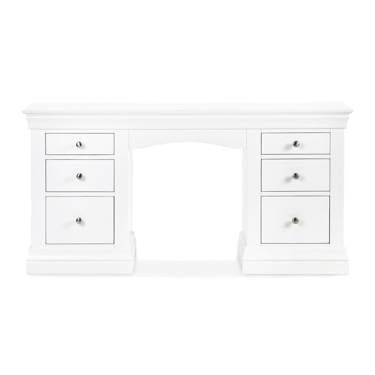 The Clermont Dressing Table in Light Grey adds a touch of French elegance to your bedroom or dressing area. Its soothing light grey lacquered finish and simple, clean lines create a bright and airy atmosphere, making it a versatile addition to both contemporary and traditional settings. Crafted from durable Pine and MDF, the design features brushed steel handles that offer a sleek, modern touch. With six pull-out drawers, you have ample storage for all your accessories and essentials. Assembly is straightforwardjust attach the handles, and you're ready to go.