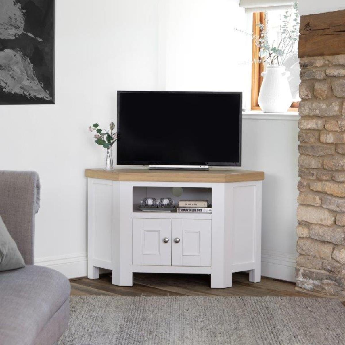 Clevedon Corner TV Unit - White/Oak In LightWood/White