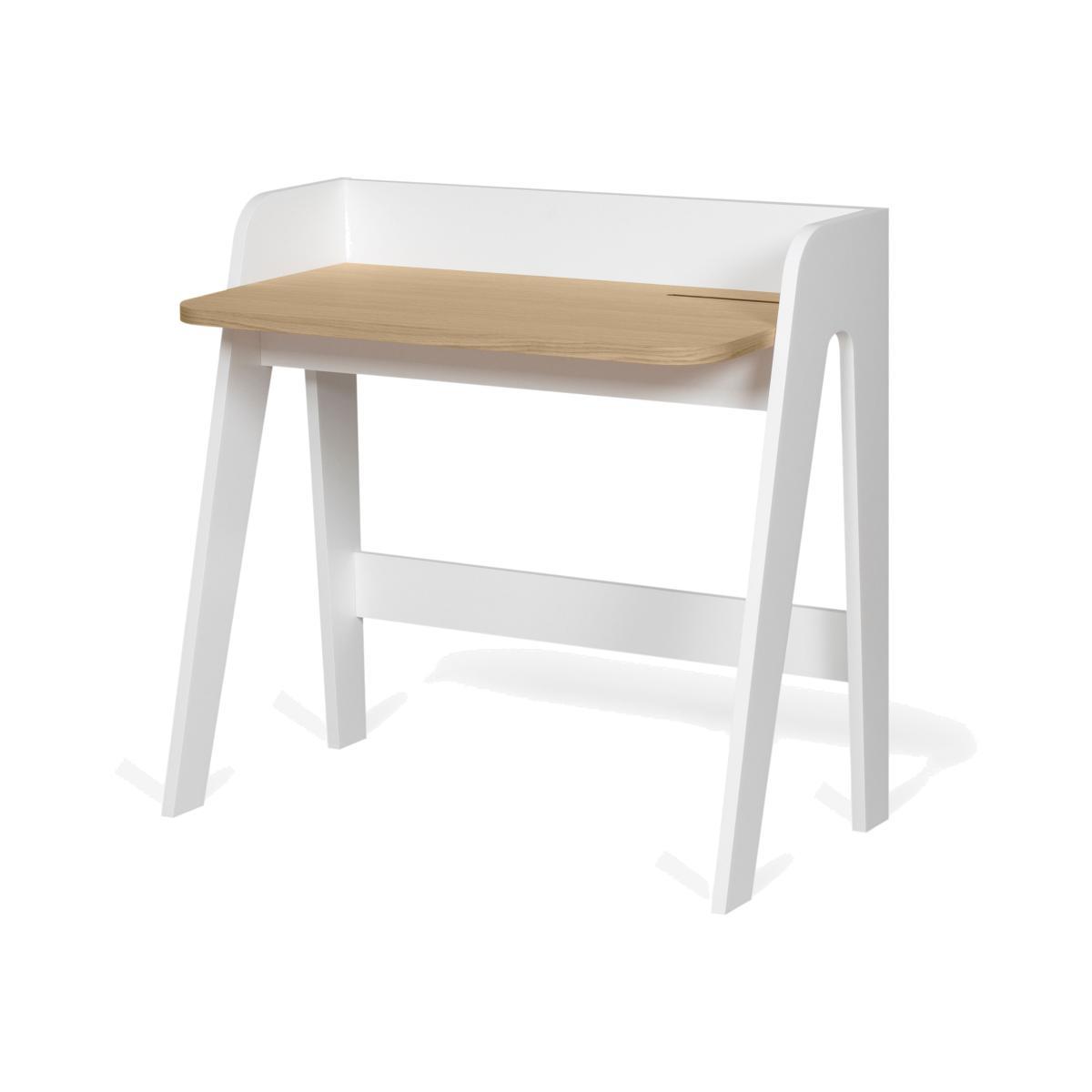 With its easel-style base and curved lines, the Clever desk combines elegance and originality. This small desk with its minimalist lines harmoniously combines light wood and white. A practical slot at the back of the top serves as a support for smartphones or tablets and lets you run your computer cables through. The lip that surrounds the top prevents items from falling off. With its compact dimensions, this desk is perfect for small spaces. It’s ideal for creating an elegant workspace in a living room, hallway or bedroom. It can also be used as a console in a hallway or dressing table in a bedroom. The Clever desk is made in Tomar, Portugal. The manufacturing workshop develops technologies with low energy consumption, burns its own wooden offcuts to produce energy, and uses recycled raw materials and packaging… Each POP UP HOME piece of furniture is made up of elements that can be separated at the end of its life for easy recycling. For easier shipping and to reduce carbon impact, this furniture is flat packed (easy assembly with instructions included).