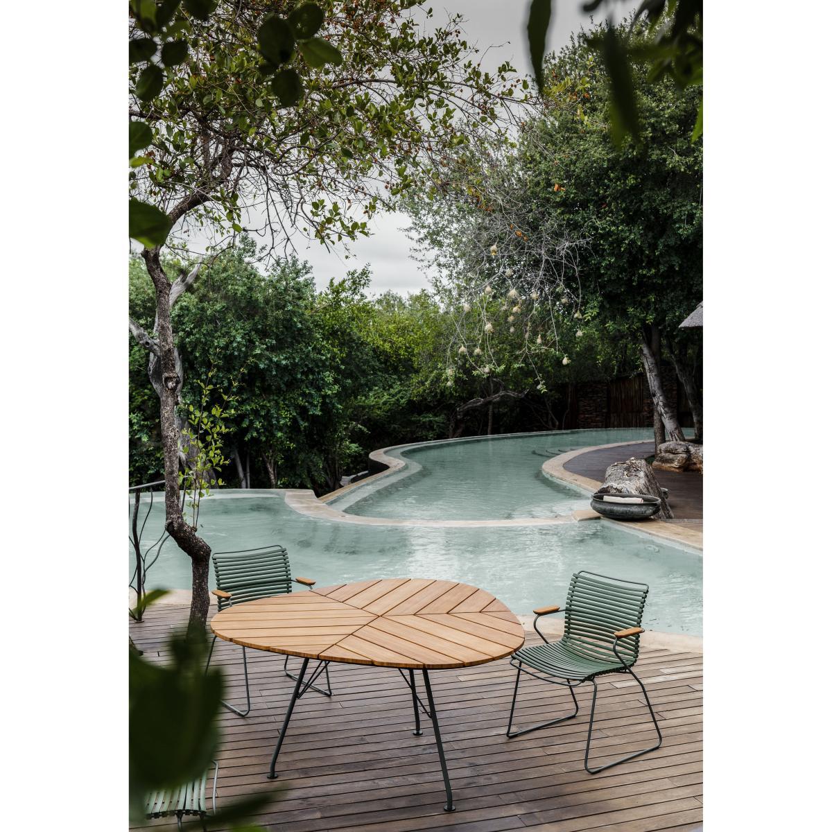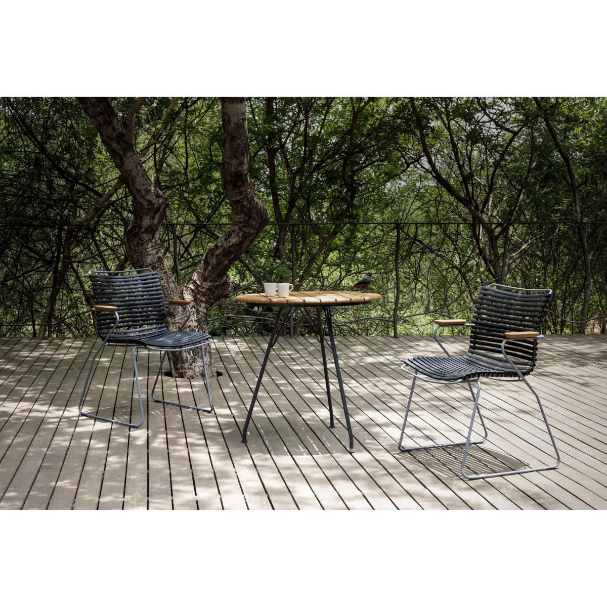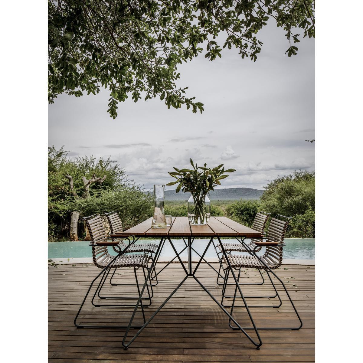 Created by Danish designer Henrik Pedersen, Click is a complete line of outdoor and indoor furniture: high armchairs, rocking chairs, footstools and sun loungers. This superb armchair with its bamboo armrests has a line that’s both refined and elegant. The epoxy lacquered metal base offers excellent weather resistance. The seat and backrest are made of plastic slats which can easily be dismantled and reassembled: have fun mixing the colours of several armchairs to create an ultra-personalised style! With its deep seat, this armchair offers optimal comfort.