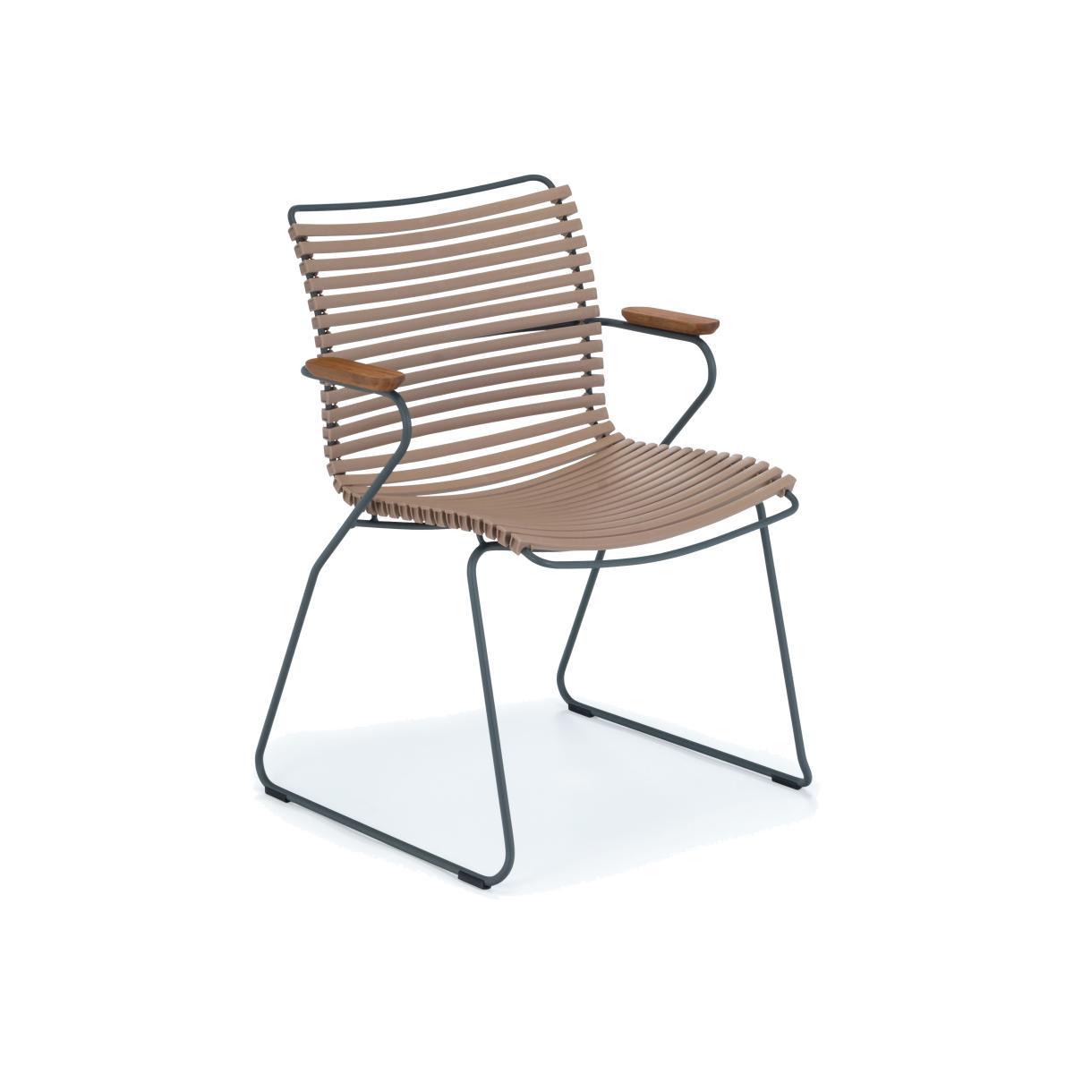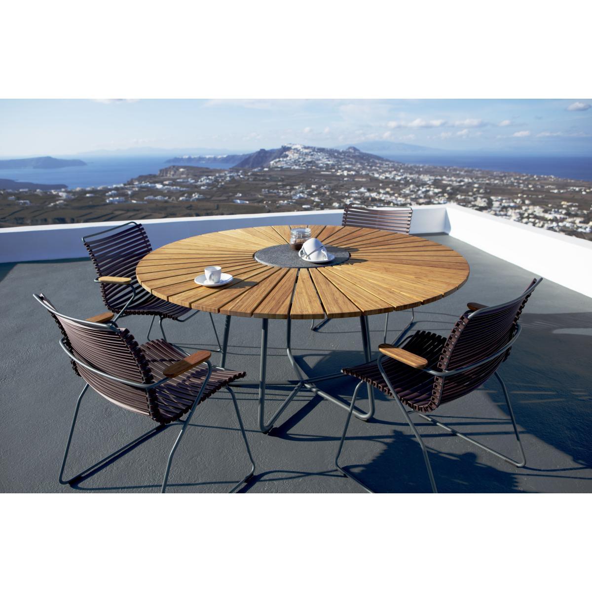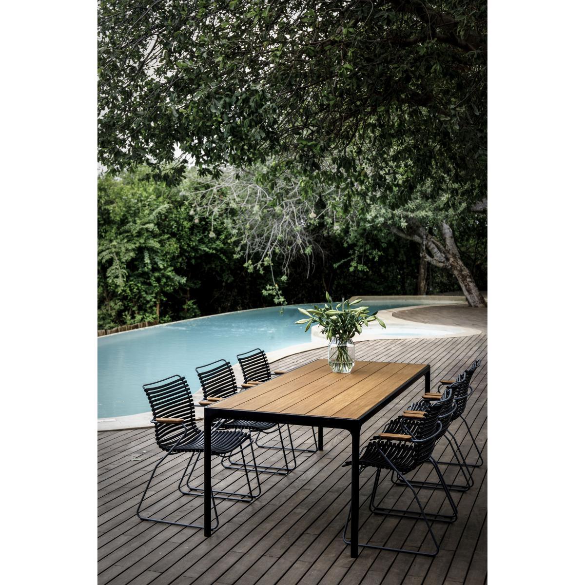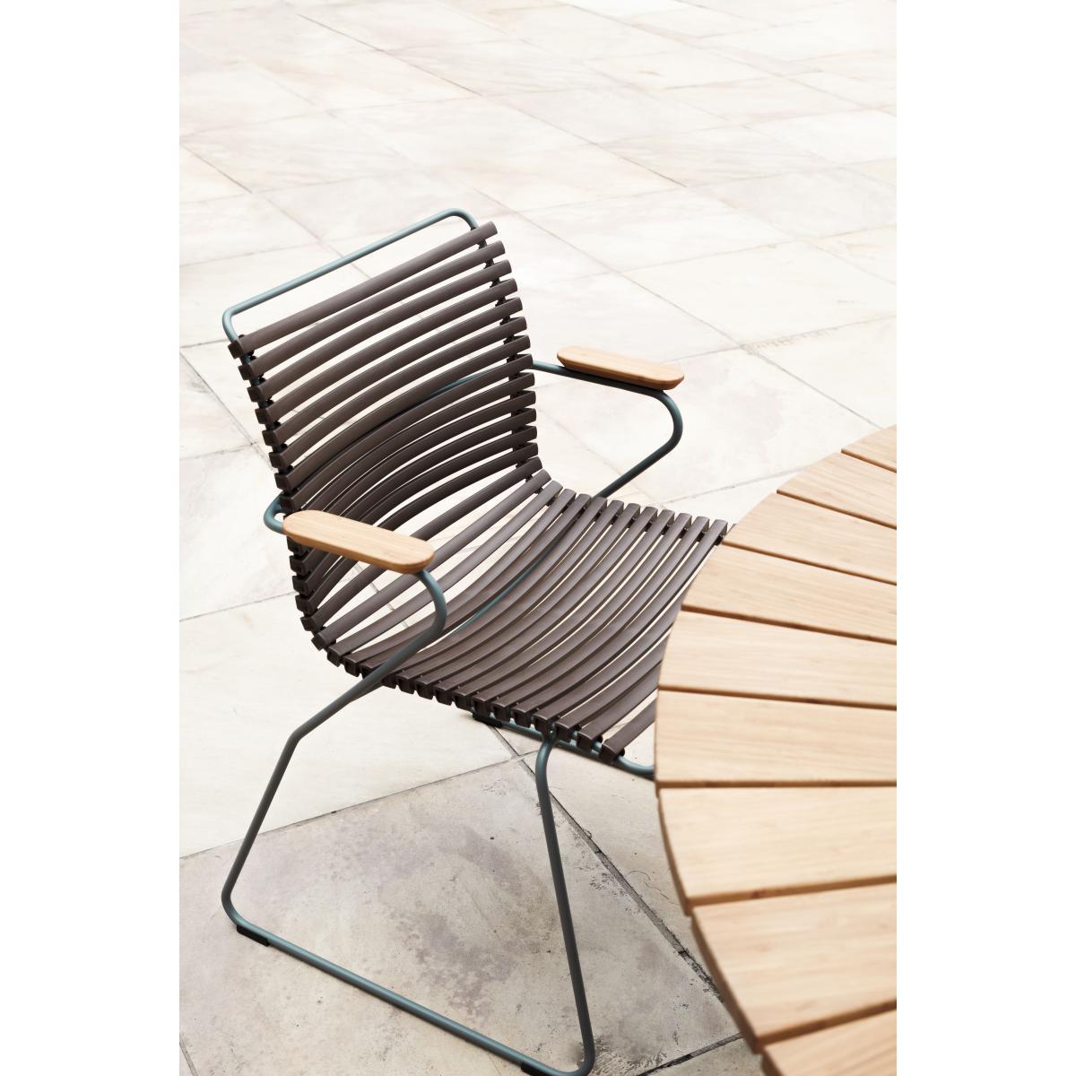 Created by Danish designer Henrik Pedersen, Click is a complete line of outdoor and indoor furniture: high armchairs, rocking chairs, footstools and sun loungers. This superb armchair with its bamboo armrests has a line that’s both refined and elegant. The epoxy lacquered metal base offers excellent weather resistance. The seat and backrest are made of plastic slats which can easily be dismantled and reassembled: have fun mixing the colours of several armchairs to create an ultra-personalised style! With its deep seat, this armchair offers optimal comfort.