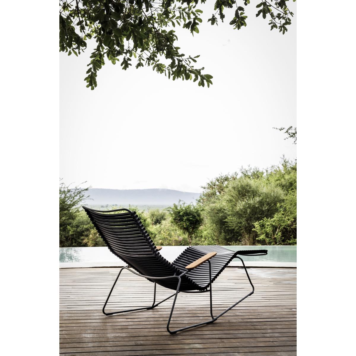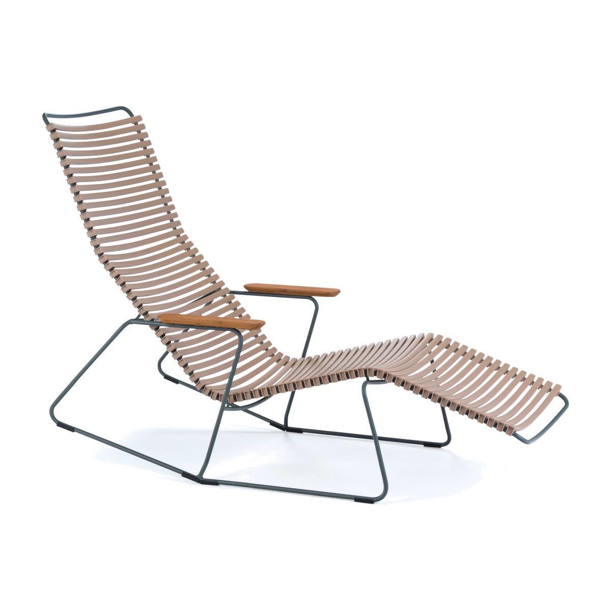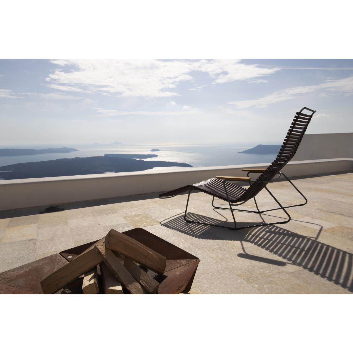 Created by Danish designer Henrik Pedersen, Click is a complete line of outdoor and indoor furniture: high armchairs, rocking chairs, footstools and sun loungers. Relax on this lovely sun lounger. With its bamboo armrests, it has a line that’s both refined and elegant. The seat and backrest are made of plastic slats which are easily clipped onto the wire metal structure. They can easily be disassembled and reassembled: have fun mixing the colours of several sun loungers to create an ultra-personalised style!.