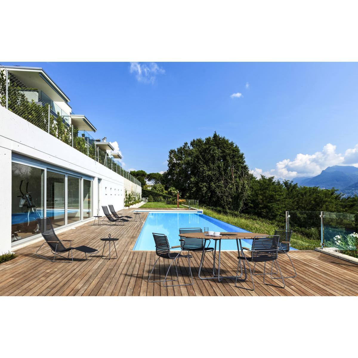 Danish designer Henrik Pedersen reinterprets traditional outdoor furniture in plastic slats. His Click collection is elegant, robust and fun all at the same time. The Click collection stands out for its great modularity: the plastic slats that form the seats are removable and interchangeable. They clip and unclip in the blink of an eye to the wire metal structure. So you can mix the colours of several seats to create an ultra-personalised style! Click uses a beautiful combination of materials: a fine, ethereal metal structure, armrests in natural bamboo with a warm look and a seat made up of a multitude of plastic slats. Make no mistake, plastic doesn’t necessarily mean discomfort. The flexible, supple seat adapts to your body. The slightly curved shape of the slats guarantees excellent comfort. With its high adjustable backrest (7 positions), this sun lounger adapts to all your requirements: reading in the shade of a tree, lazing by the pool. Its sculptural curves make it an exceptional piece.