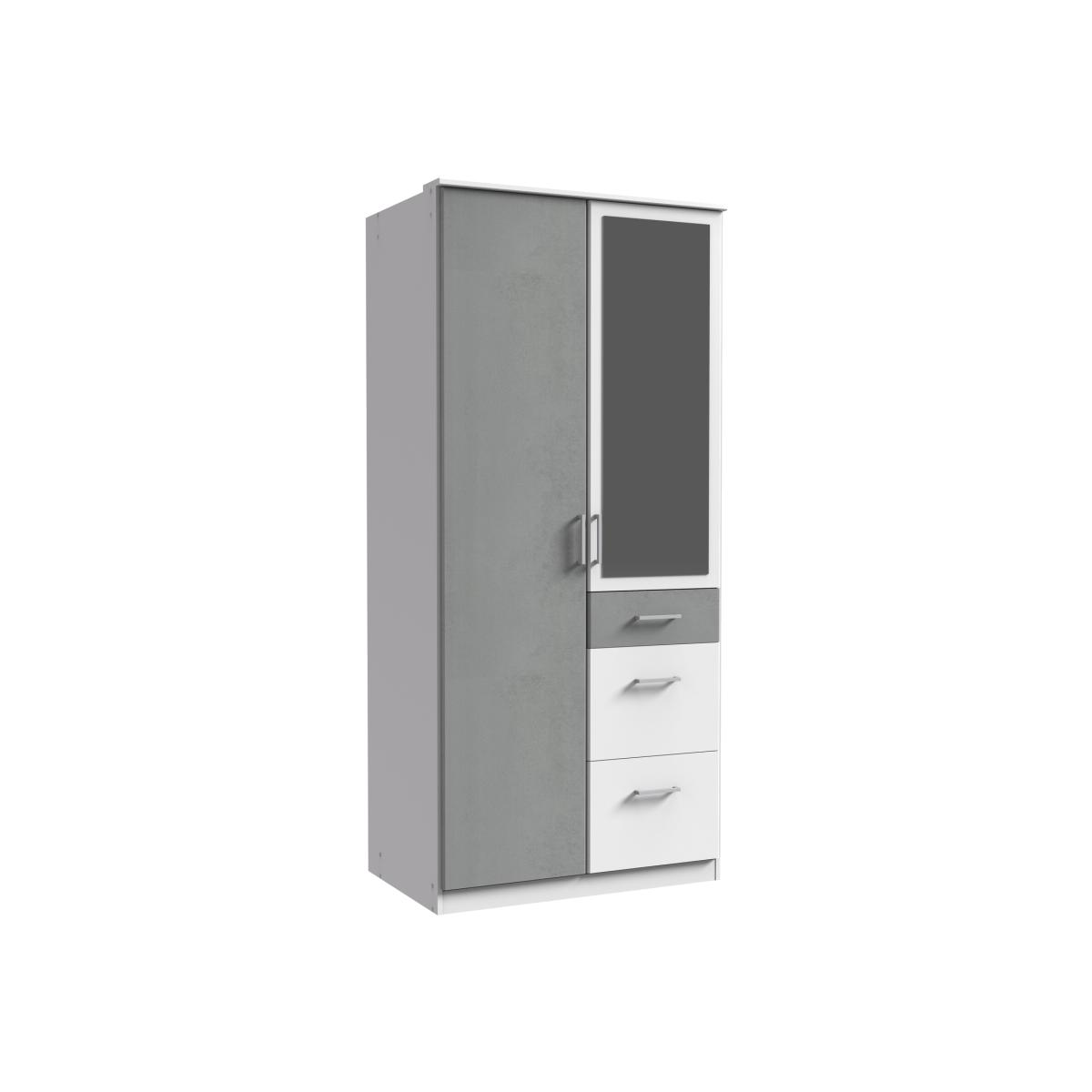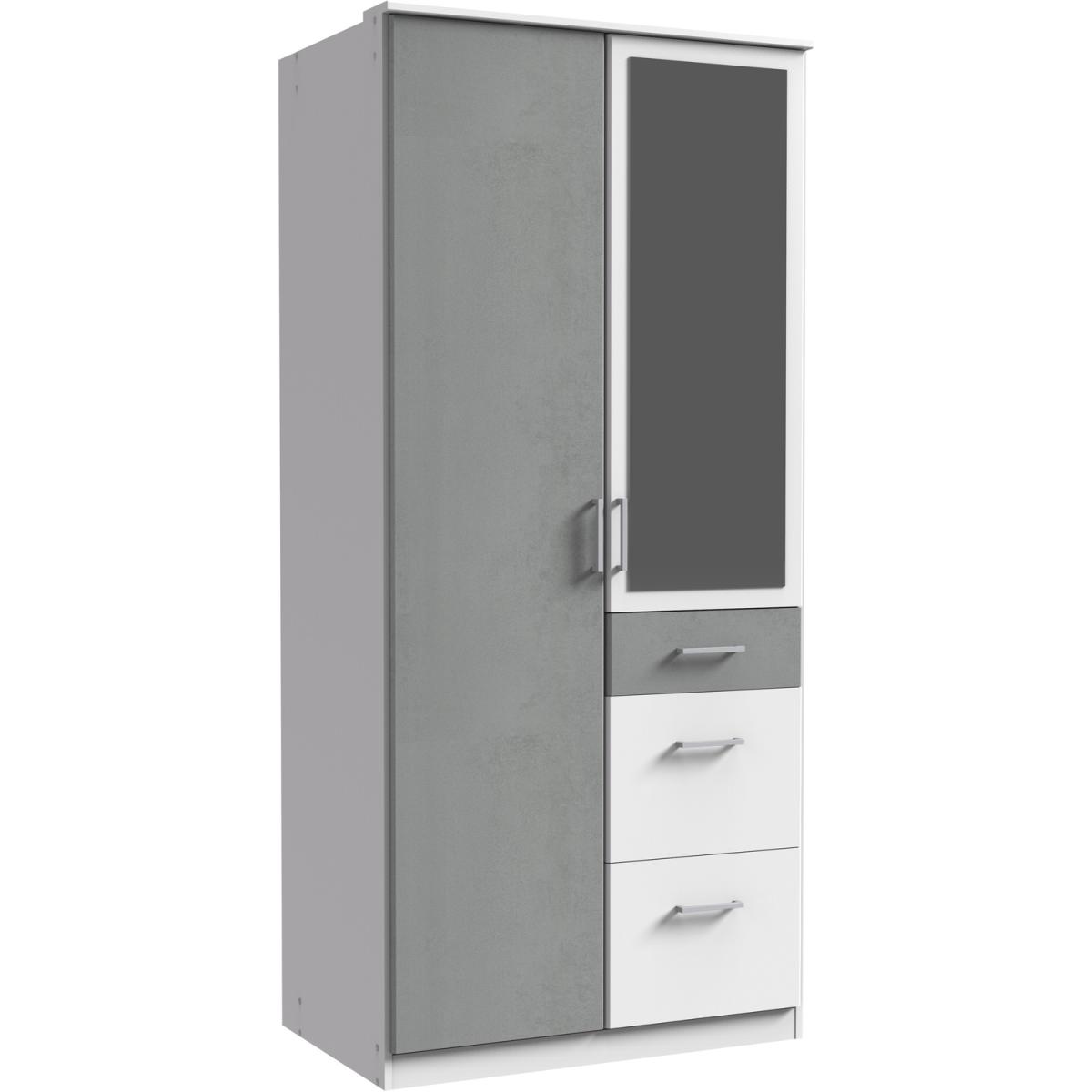 Then click 2 Door Wardrobe has a sleek and contemporary look, finished with White And Grey The wardrobe has trendy handles along with the 1 door being mirrored which give the wardrobe a modern look. This robe gives you 2 different areas of storage. The right section is divided with 3 drawers at the bottom and 2 shelves behind the mirrored door, the left sections are fitted with a single shelf and hanging rail in each. All Tjs products are designed and built-in Germany and constructed to a high standard. All Tjs ranges are subject to full quality checks before leaving the factory to ensure a consistent standard of product.