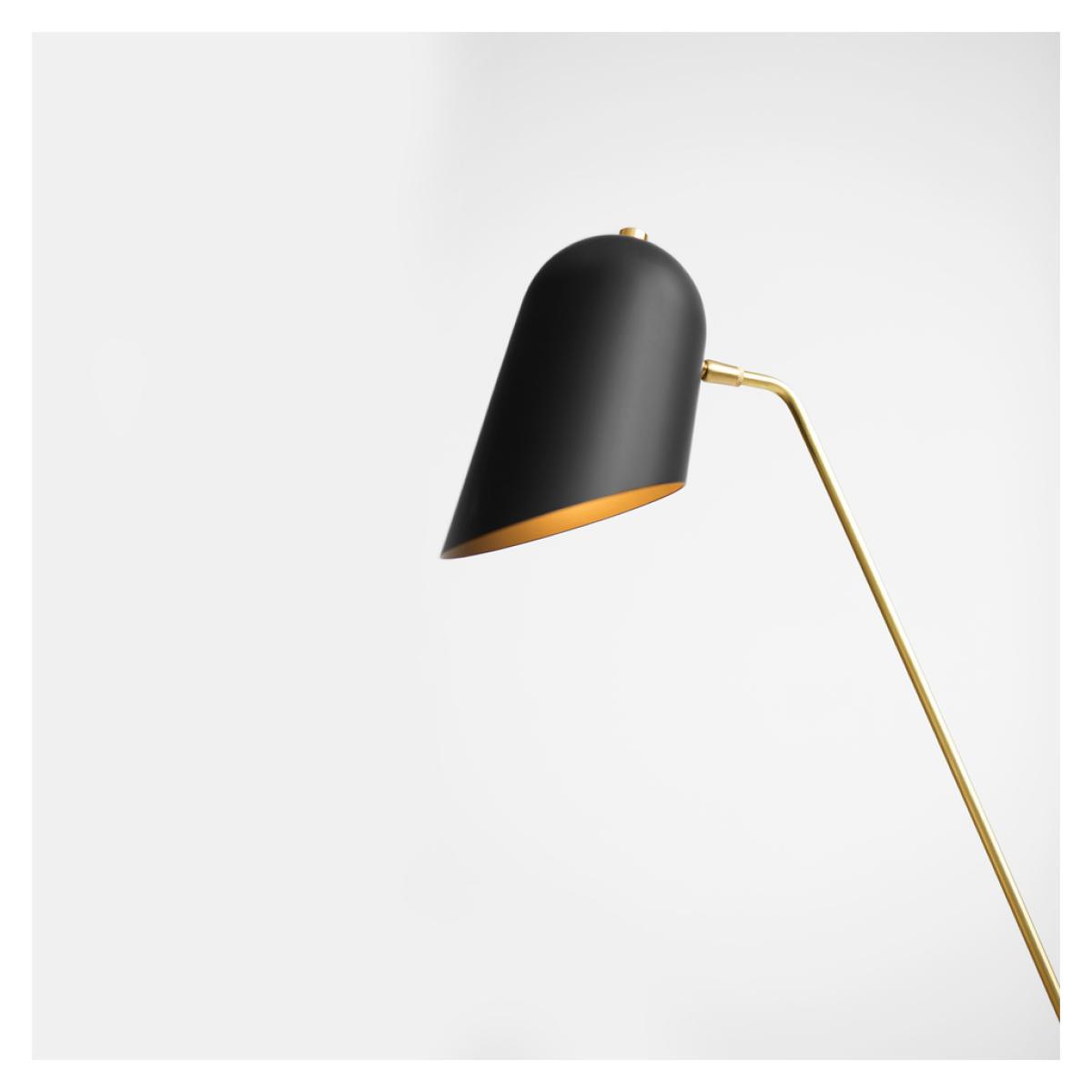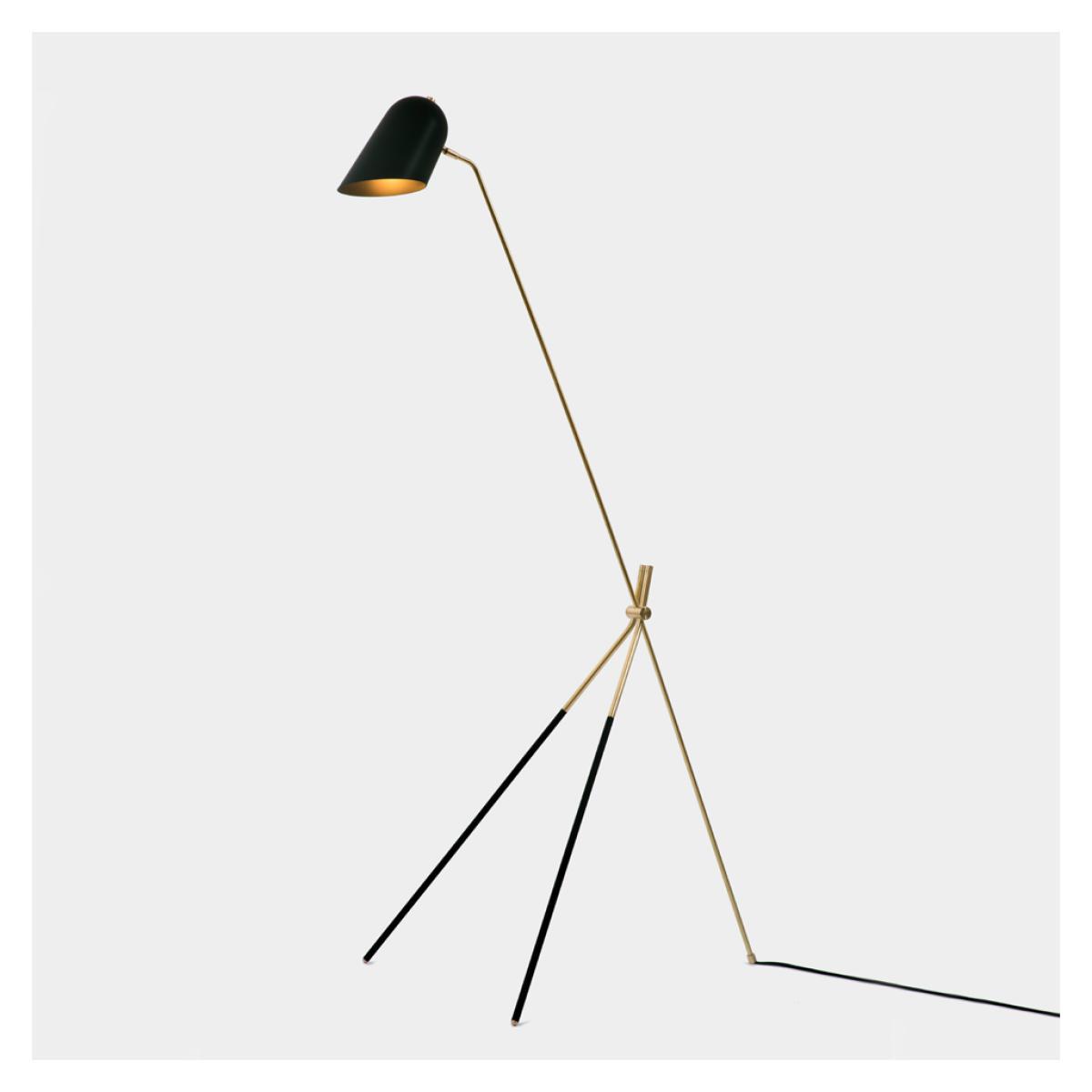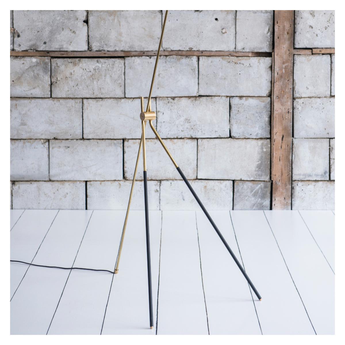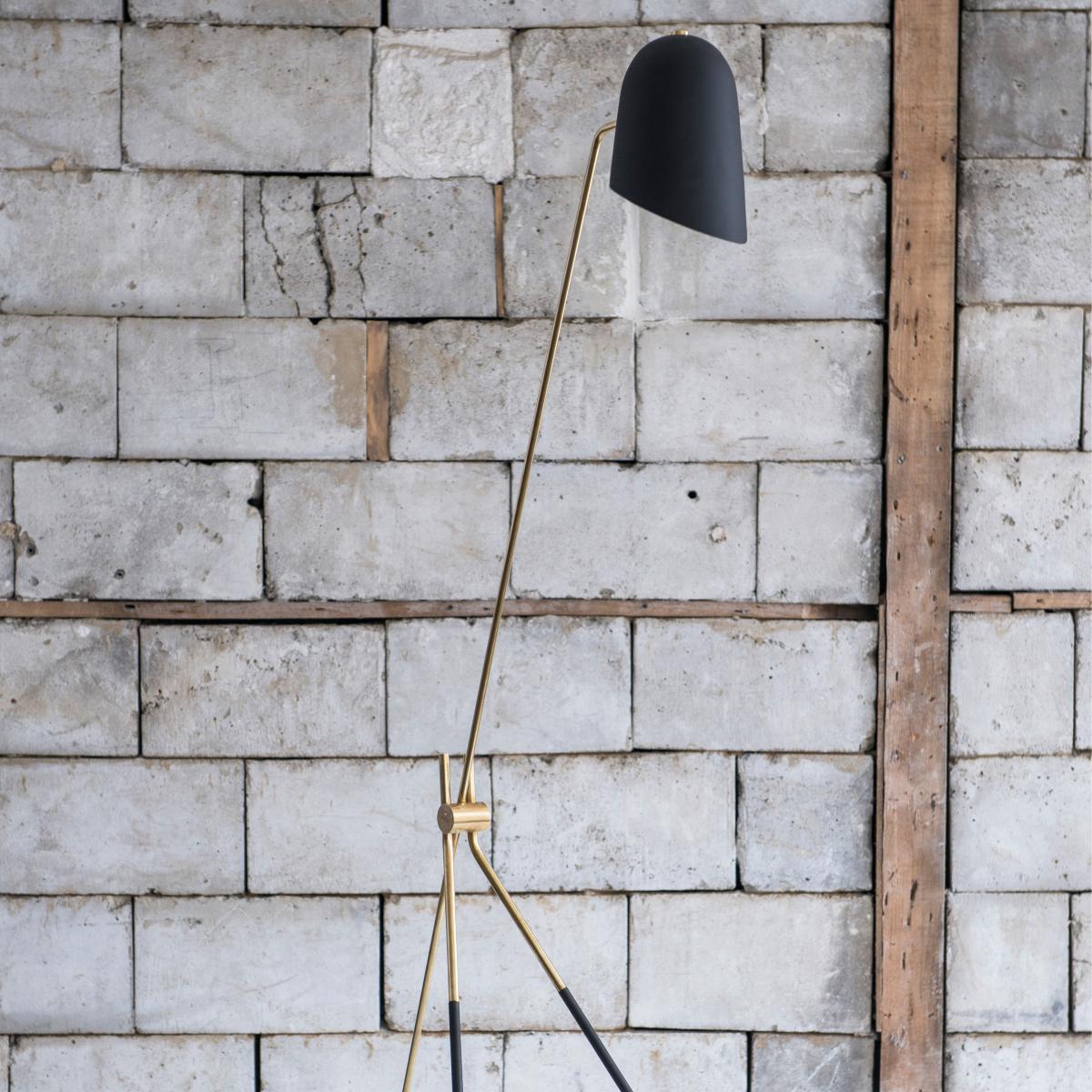 The black Cliff Floor Lamp is a minimalist design by Montreal-based studio Lambert & Fils. A sculptural statement lighting solution, the Cliff Floor Lamp is crafted with a matte black powder-coated steel shade accented with a brass inner surface, elevated on a brass tripod stand with a concealed power cord. Lambert & Fils was founded in 2010 by Samuel Lambert, a lighting design studio based in Montreal taking inspiration from mid-century Modernism, industrial design and minimalist aesthetics. An eye-catching lamp perfect for illuminating corners or offering a clear reading light, the black Cliff Floor Lamp features a reflective brass inner panel that creates a warm emanation. Requires 1 E27 bulb max. 60W (not included).