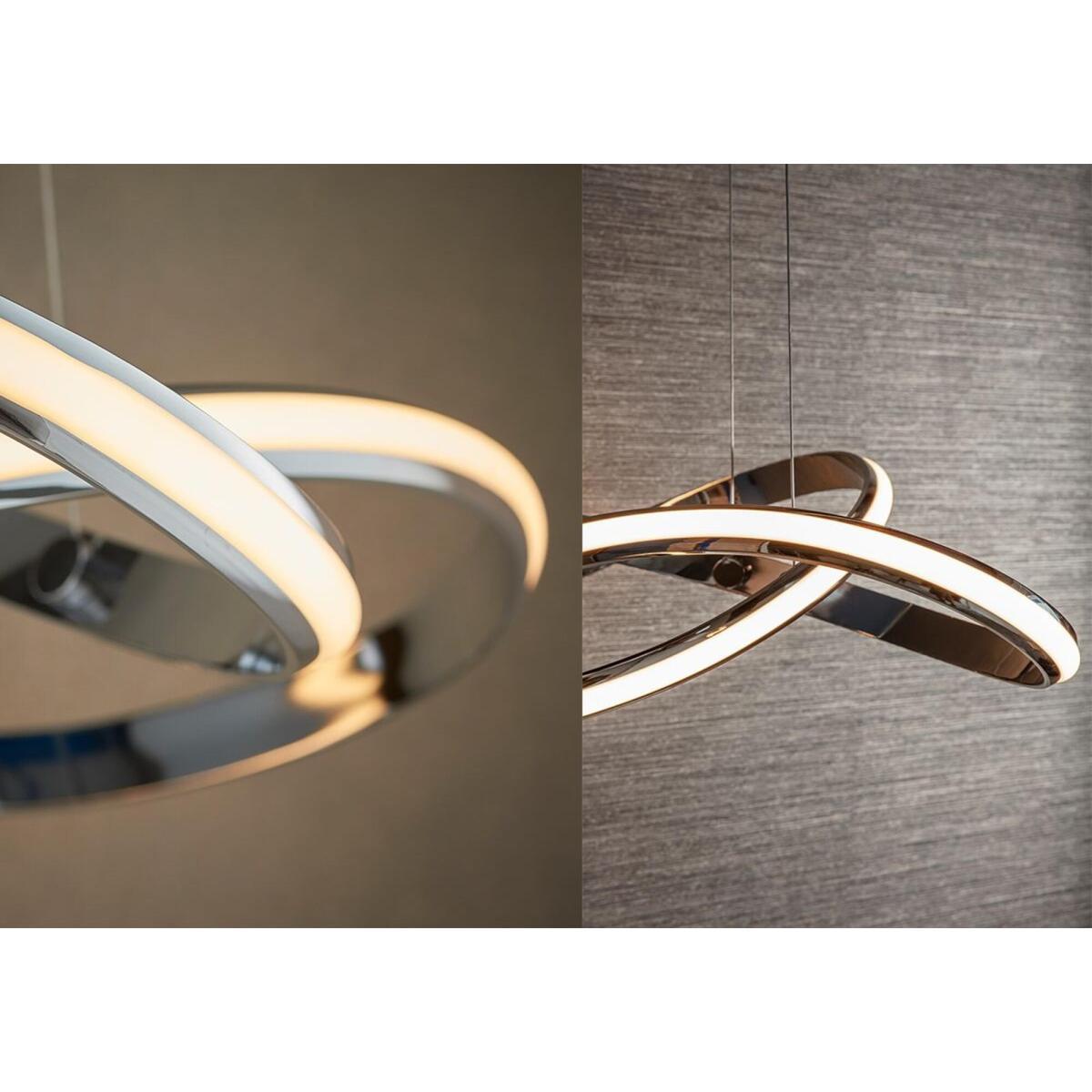 Introducing our Clifford pendant, a futuristic take on contemporary lighting. This dimmable, chrome-finished metal pendant has a smooth swirl design with an integrated LED strip inside for a warm, energy-saving glow. Its sharp and modern look makes the Clifford, alongside the matching fittings within the range, a feature in itself, perfect for contemporary interiors in need of some spice.