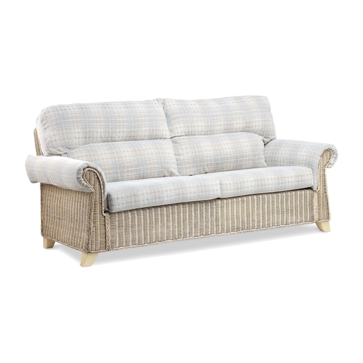 Stay comfortable all year round with the Clifton 3-Seater Sofa in Athena Check, it has a natural wash finish and is perfect for any home. It not only looks wonderful, but it is also a natural, hand-crafted, ethical product manufactured from sustainably farmed materials. The Clifton Natural Wash collection is ideal if you are searching for a new, stylish, and contemporary couch or want to give your conservatory, kitchen area, summer house, or even living room, a real sense of modern elegance. The set includes a 3-Seater Sofa and soft, foam-filled seat cushions with supportive fibre-filled back cushions that are Dacron wrapped for longevity as well as a comfortable plump finish. The Clifton Natural Wash collection features a sustainably farmed rattan frame and Pirelli webbing has been used in the base of the furniture for a sturdy foundation designed to last many years to come. Each corner also features sturdy wooden feet, raising the sofa set up slightly from the ground. The cushions are also manufactured in the UK and the covers are removable for dry clean only.
