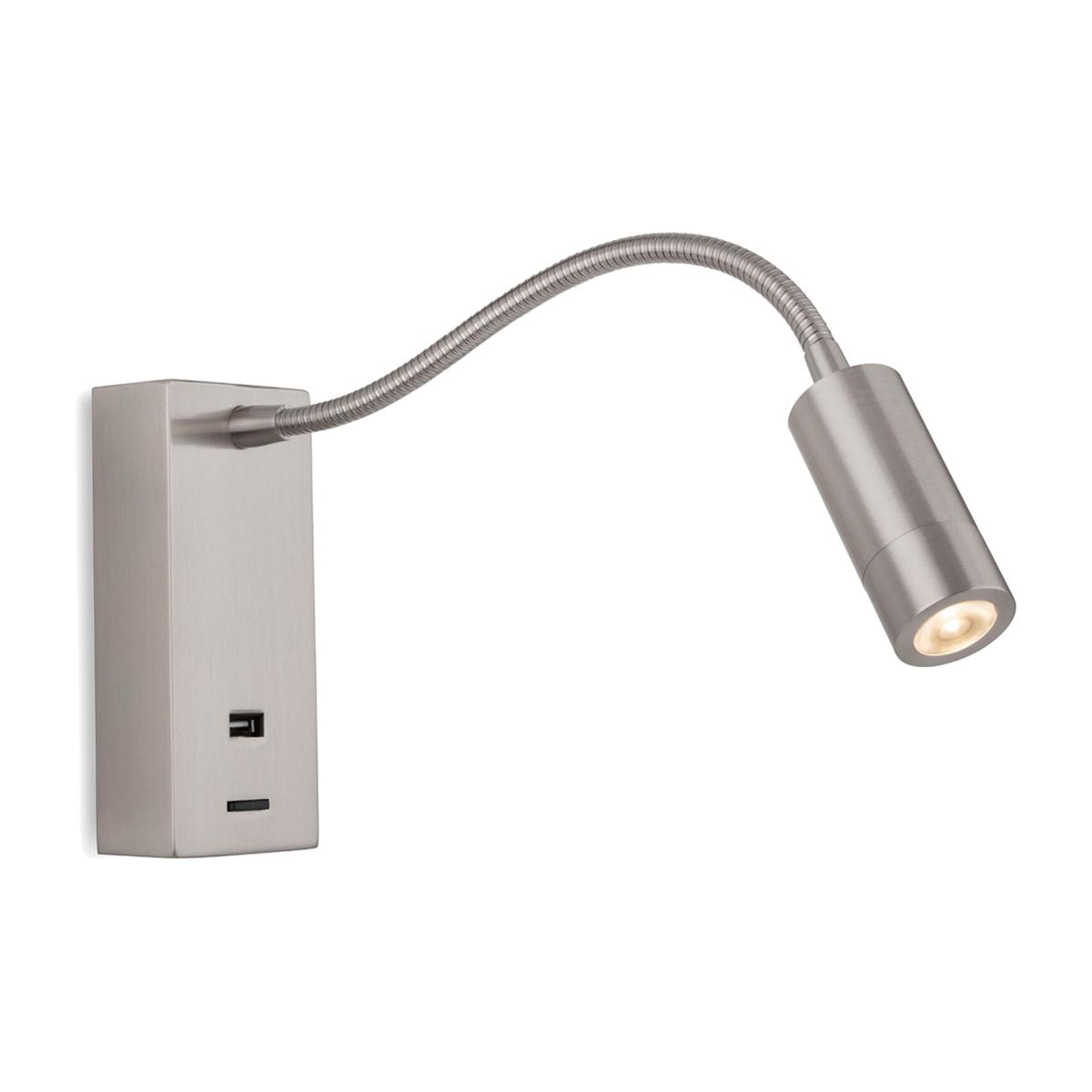 Clifton LED Flexi Wall Reading Light USB Brushed Steel - Brushed Steel