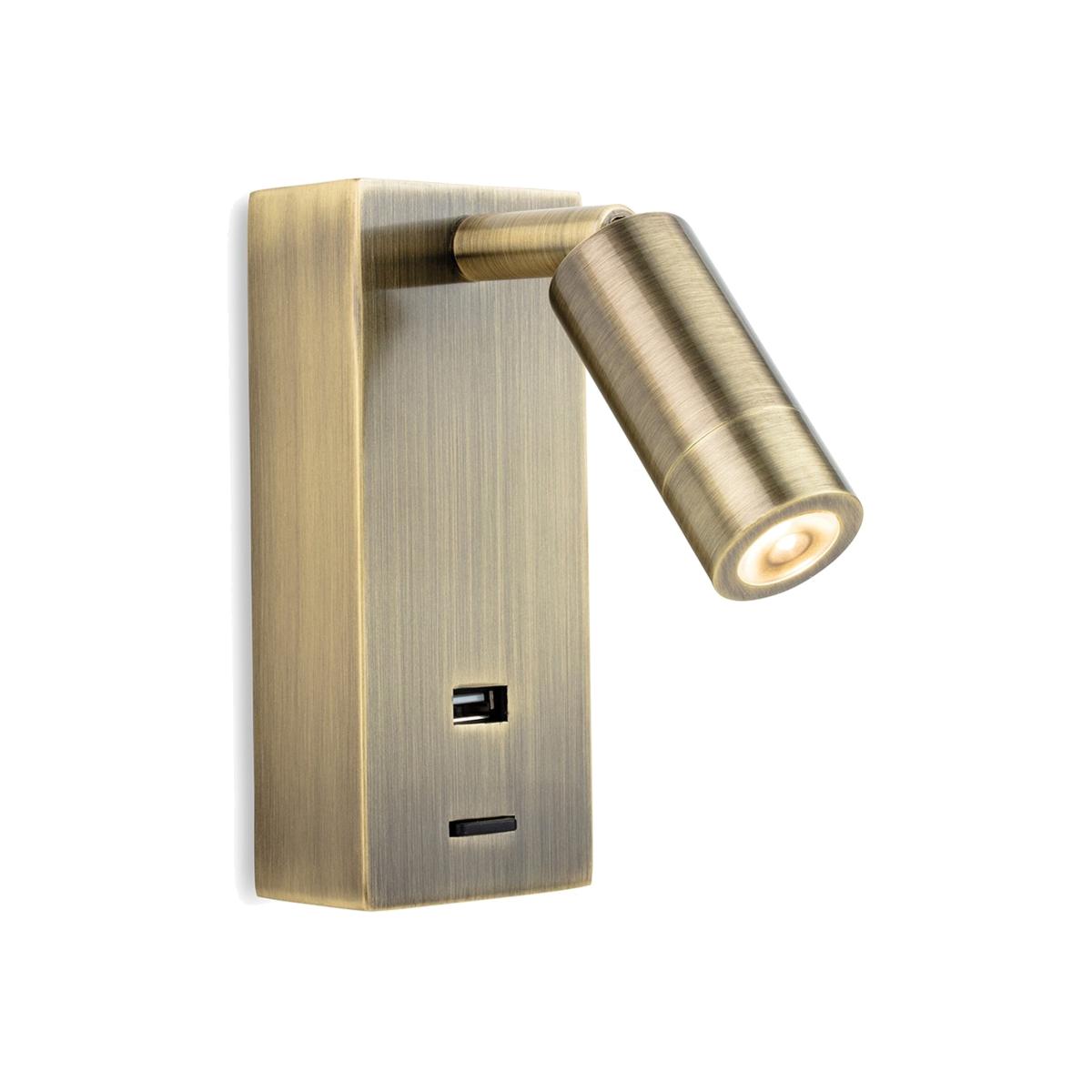 Clifton LED Wall Reading Light USB Port Antique Brass - Antique Brass