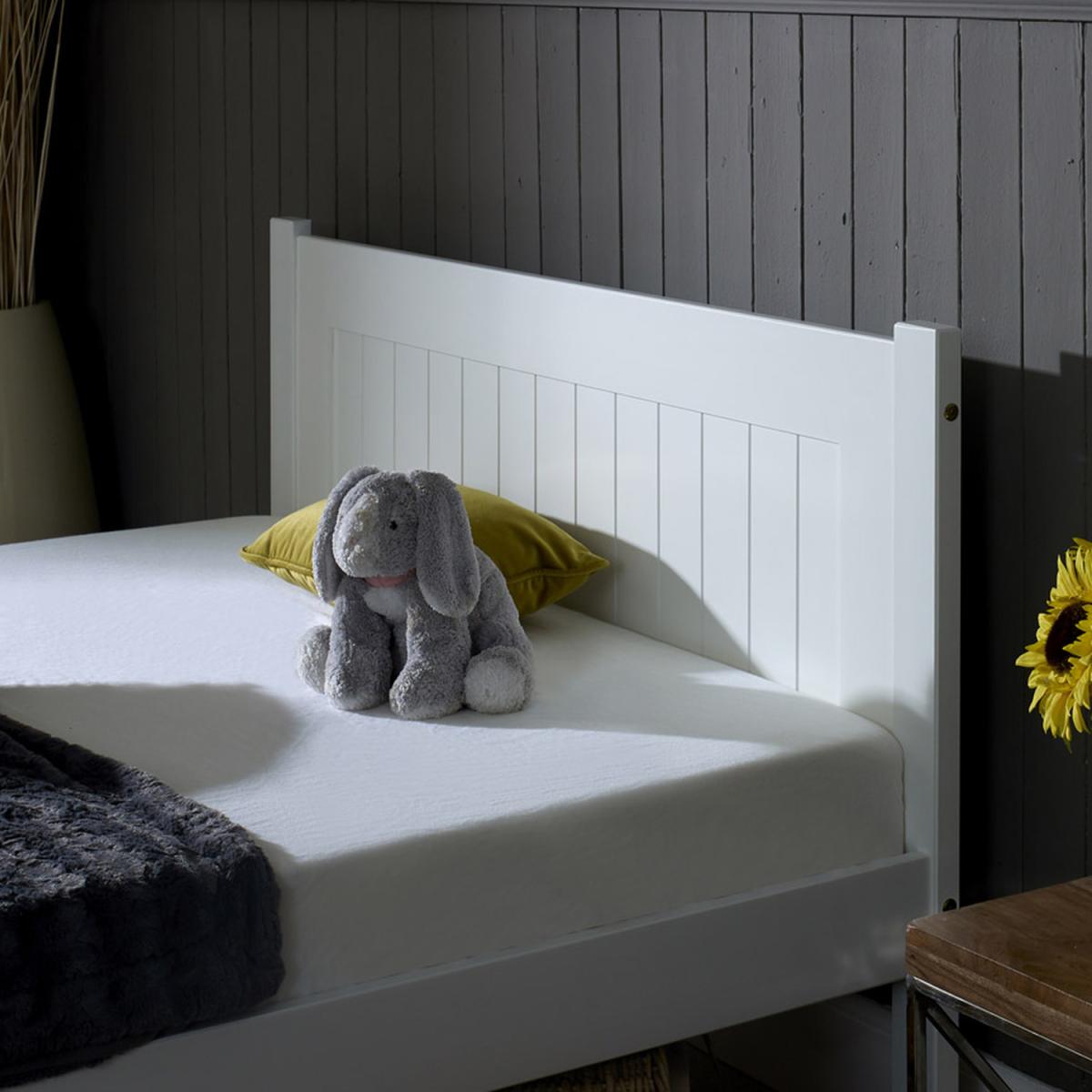 If you prefer a traditional-style bed, the Clifton bed is perfect for you. It comes in various sizes and features a superb white finish. The bed is constructed using a wooden and pine mix for increased stability and sturdiness. The Clifton bed has a solid slatted style headboard and a low foot end, creating a greater sense of space in your bedroom. There is also a storage gap beneath the bed for items you don't want on display. The solid slatted base provides firm support for your mattress. The bed comes flat-packed but can be easily assembled using the provided instructions.