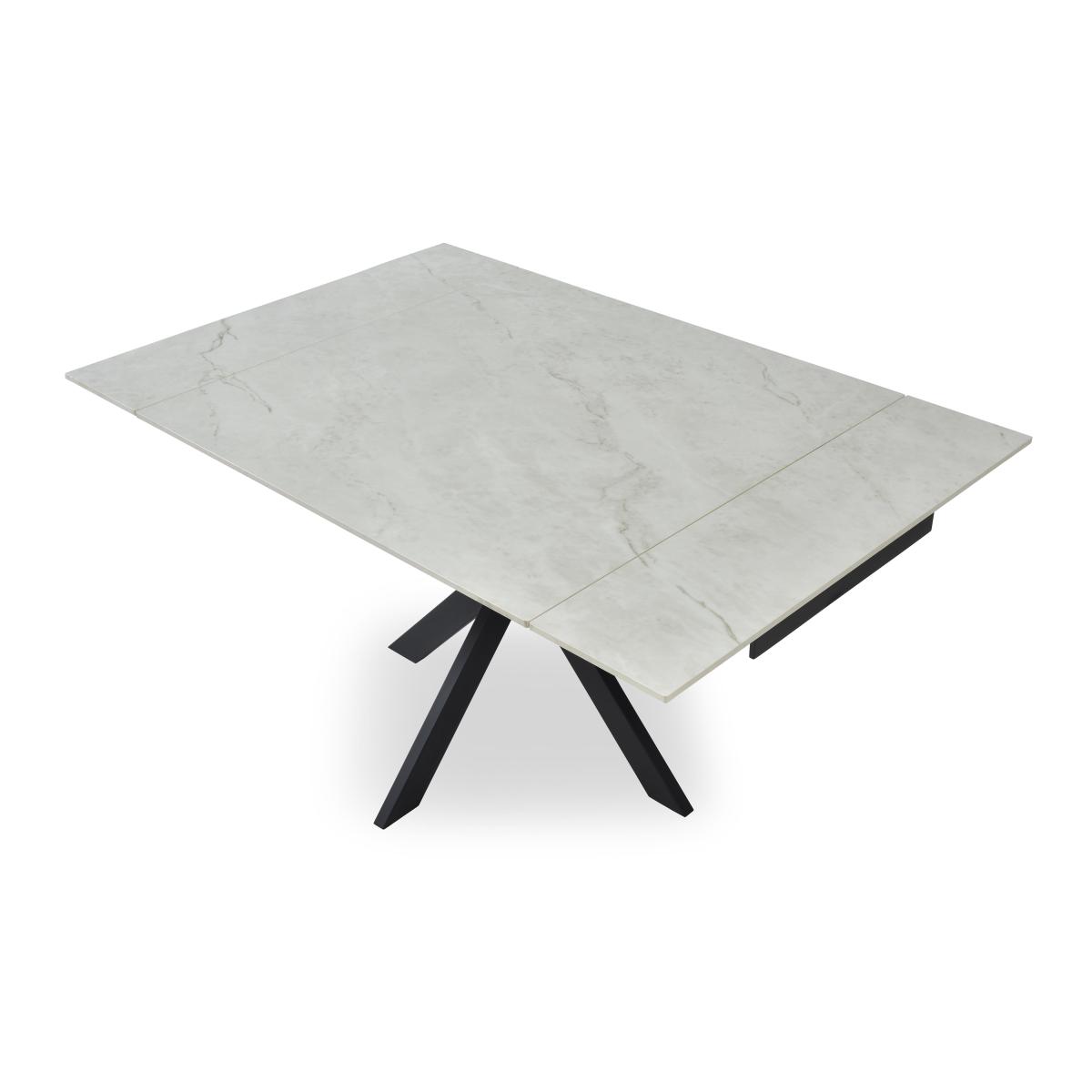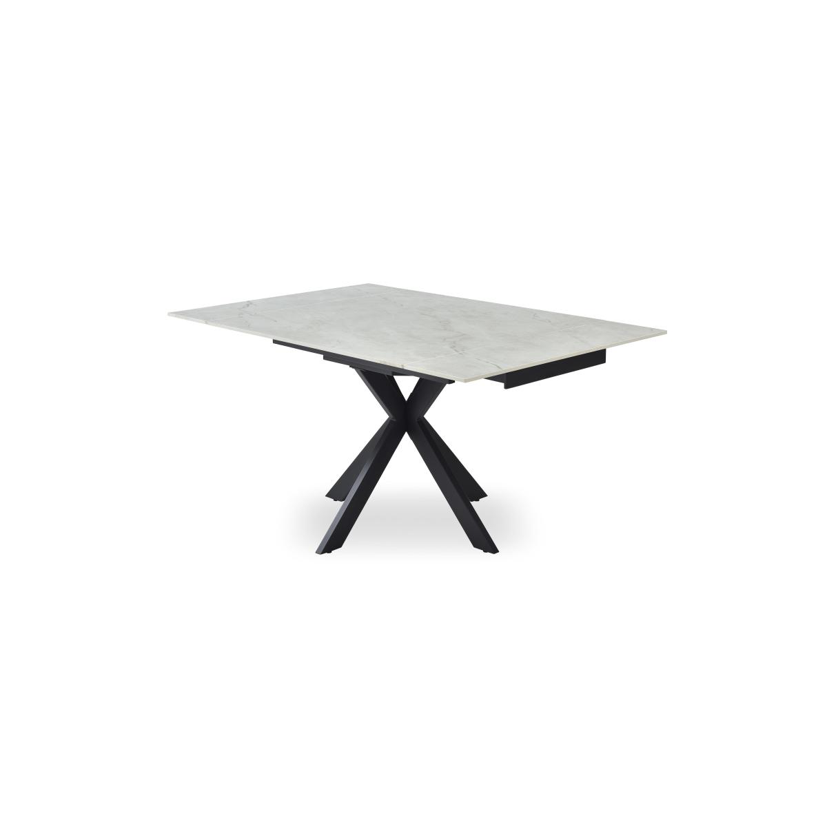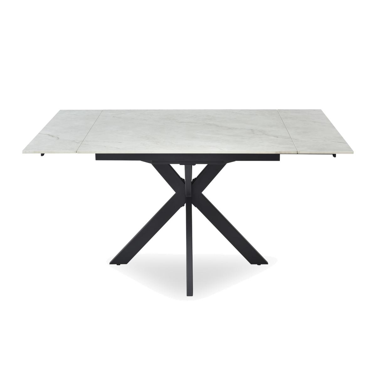 Small is beautiful, and that’s especially true of our Clio range. Thoughtfully designed to suit more compact rooms, this modern collection brings striking ceramic style to living and dining spaces. The square extending dining table can be neatly pushed against a wall until guests arrive, and the occasional tables are the perfect size for compact living rooms. And there’s no doubting the quality of these pieces. Glossy off-white ceramic tops are a full 12 mm deep, and table frames and bases are sturdily made of black metal. The range includes dining sets that feature the collection’s shapely dining chairs. The Clio range is exclusively available at Furniture Village. Designed for compact spaces, the ceramic furniture in our Clio range delivers sleek and striking modern style in abundance. This square extending dining table with its sculptural base is a showstopper. Why you'll love it Perefly proportioned, stylishly ceramic – that’s our Clio collection. Ideal for compact spaces, this square table extends to seat 2 more. Off-white ceramic top has a high-gloss finish and subtle veining. The finish is as durable as it is beautiful, as ceramic is heat-, scratch- and chip-resistant. So easy to extend. Simply pull on the table ends to draw out 2 extra leaves. Twisted leg base in black metal is stylish and sculptural – and also very practical. This ergonomic design makes more space for diners’ legs. Only at Furniture Village. This extending dining table is part of our Clio range. What you need to know Top is 12 mm ceramic. Metal frame and base. 100 cm dining table seats 4 closed and 6 when extended to 150 cm. Please note that the ceramic patterning on the extension leaves may not match that of the table top. We recommend using coasters and placemats at all times. To clean, simply wipe with a clean damp cloth. Do not use abrasive cleaning products. Item code: CLIOTBL---001