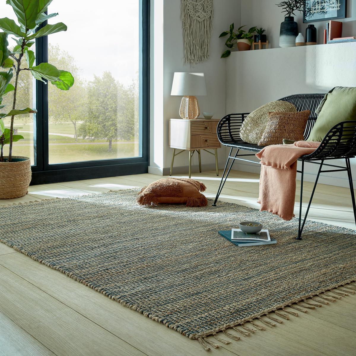 Choose the Clio Jute Cotton rug to add some natural style to your space. In a blend of hard-wearing jute with soft cotton chenille, the low-profile composition makes this the perfect rug for high-traffic spaces. Hand-woven by skilled rug artisans and hand-finished with tassels to complete the artisanal look. We love using Clio in neutral living rooms. This rug is hand-made from natural fibres. When opening, re-roll your rug pile out and leave in a warm room for 24 hours before putting in place, this will help to reduce wrinkles and curling from packing. A small amount of fibre loss is normal on a new rug. Turn your rug regularly to ensure even wear and reduce pressure marks from furniture. Colours may vary due to this being made from natural fibres. Do not pull any loose threads, please cut them carefully with scissors to remove. Avoid prolonged exposure to direct sunlight as this may cause fading of the colour. Before using any cleaning products on your rug, test on an inconspicuous area first to ensure it does not affect the colour. Clean spills immediately by blotting with a clean dry white cloth - do not rub as this may stain the fibres. Vacuum your rug regularly to remove everyday dirt, we recommend the use of a suction type vacuum cleaner as a rotating vacuum brush can cause damage to the pile surface. Before using any cleaning products on your rug, test on an inconspicuous area first to ensure it does not affect the colour. Clean spills immediately by blotting with a clean dry white cloth - do not rub as this may stain the fibres. Vacuum your rug regularly to remove everyday dirt, we recommend the use of a suction type vacuum cleaner as a rotating vacuum brush can cause damage to the pile surface. Please do not leave babies or young children unsupervised on this rug.