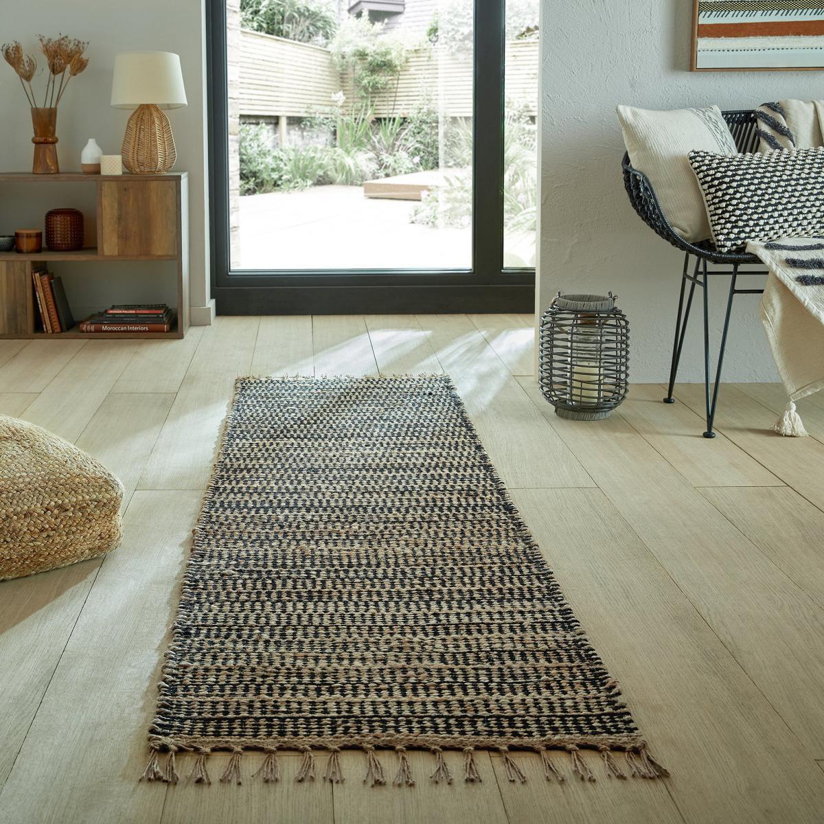 The Clio Jute Cotton Runner in black offers a practical yet stylish option for children’s spaces or areas where durability is key. I love its natural texture with a hint of monochrome, making it versatile enough to suit contemporary, Scandi, or even eclectic interiors. It works particularly well in playrooms or bedrooms with neutral tones, adding warmth and tactile interest without overwhelming the space. For styling, consider pairing it with layered textiles in muted colours and simple furniture to keep the look inviting and kid-friendly. Adding some cosy cushions or a playful rug can help soften the space further, making it both functional and visually appealing for little ones.