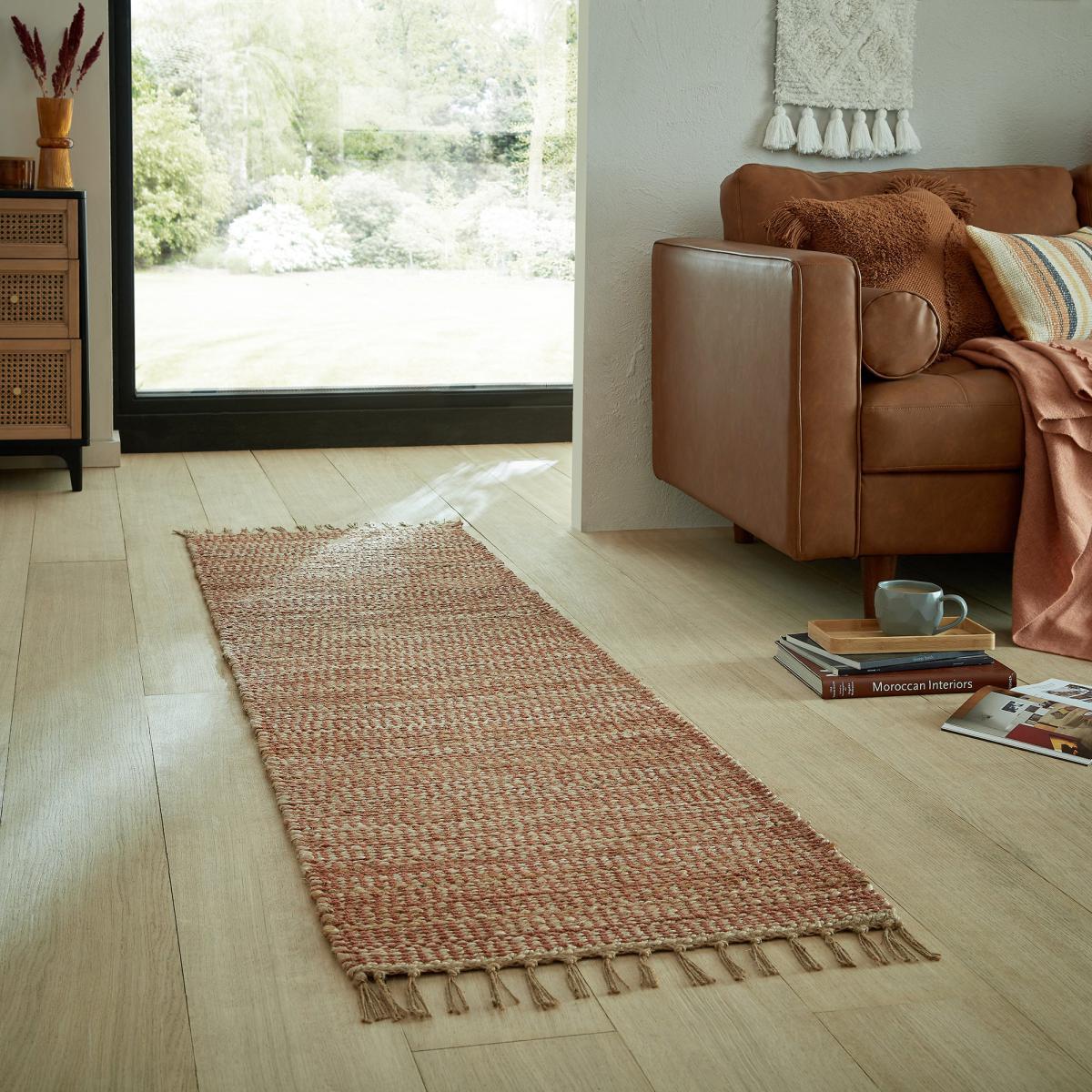 I love the Clio Jute Cotton Runner because it adds a warm, natural texture that’s ideal for cheerful, child-friendly spaces. Its butterscotch hue brings a cosy, inviting feel and pairs well with neutral or pastel colour schemes, making it versatile for various interiors. It’s practical too-durable and easy to clean, perfect for high-traffic areas like children’s bedrooms or playrooms. To style it effectively, consider layering with colourful cushions, or place it alongside simple furniture to maintain a bright, fresh look. This runner works well in modern, boho, or rustic schemes, adding just the right balance of functionality and charm.