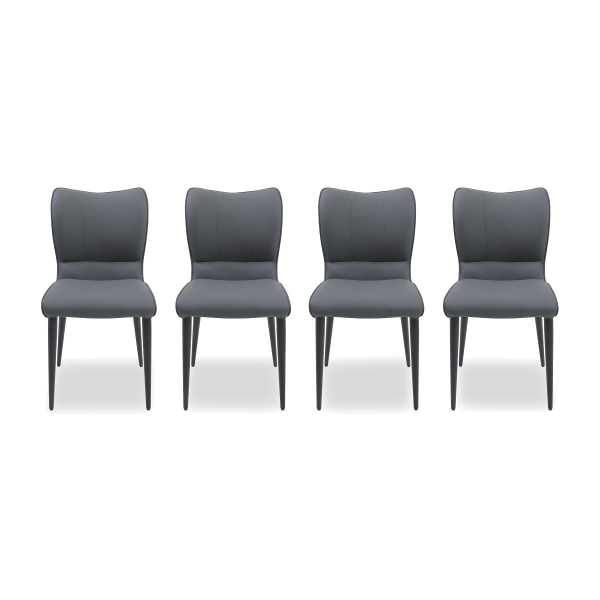 Small is beautiful, and that’s especially true of our Clio range. Thoughtfully designed to suit more compact rooms, this modern collection brings striking ceramic style to living and dining spaces. The square extending dining table can be neatly pushed against a wall until guests arrive, and the occasional tables are the perfect size for compact living rooms. And there’s no doubting the quality of these pieces. Glossy off-white ceramic tops are a full 12 mm deep, and table frames and bases are sturdily made of black metal. The range includes dining sets that feature the collection’s shapely dining chairs. The Clio range is exclusively available at Furniture Village. Designed for compact spaces, our Clio range delivers sleek and striking modern style in abundance. These stylishly curved dining chairs have slender metal legs and sumptuous cushioning. Why you'll love it Perfectly proportioned, beautifully designed – that’s our Clio dining chairs. These chairs’ elegant lines and exaggerated curves really stand out. Shaped for comfort with supportive high backs. Slender black metal legs. Upholstered in soft faux leather. Diamond stitching detail on seat backs. Also available in sets of 2 and 6 chairs. Only at Furniture Village. This set of 4 dining chairs is part of our Clio range. What you need to know Metal frames and legs. Foam cushioning. Item code: CLIO4CHRDGRY-001