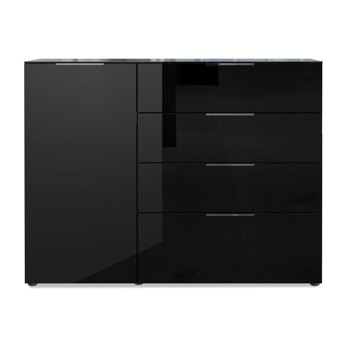 Designed and made in Germany, our Clio range of storage furniture offers that perfect combination of durable functionality and contemporary style. The range offers a wide choice of chests of drawers and sideboards, so it’s easy to find the one that suits your space and fulfils all your storage requirements. The melamine finish is sleek yet durable, and the opaque glass door and drawer fronts give each piece an extra dimension of cool style. Offering a clean and chic look for any room, Clio is available in a choice of colours. Choose black or graphite-grey for your living room or dining room, and glossy white for the bedroom. Available in a choice of colours, this small sideboard is sleek and stylish. It also has plenty of shelves and drawers, and is built to last with a robust melamine finish and toughened edges. Why you'll love it Spacious small sideboard has contemporary flair. Sleek storage for modern homes. Opaque glass door and drawer fronts. Cupboard door and drawers are soft closing. Melamine finish is resistant to scuffs and scratches. Tough shock-resistant edges. In a choice of colour finishes. Eco-friendly – this small sideboard is packaged without Styrofoam. Made in Germany. A Furniture Village online exclusive. This small sideboard is part of our Clio range. What you need to know Easy self-assembly required, full instructions included. Single door cupboard has 3 shelves. Finished with a durable melamine resin coating. WARNING!Furniture can tip over unexpectedly and cause injury. This item must be fixed to a wall using the anti-tip kit provided. Be sure to use the correct wall fixings suitable for the walls in your home. Furniture Village is not able to fix anti-tip devices for you. Seek professional advice if you are unsure.
