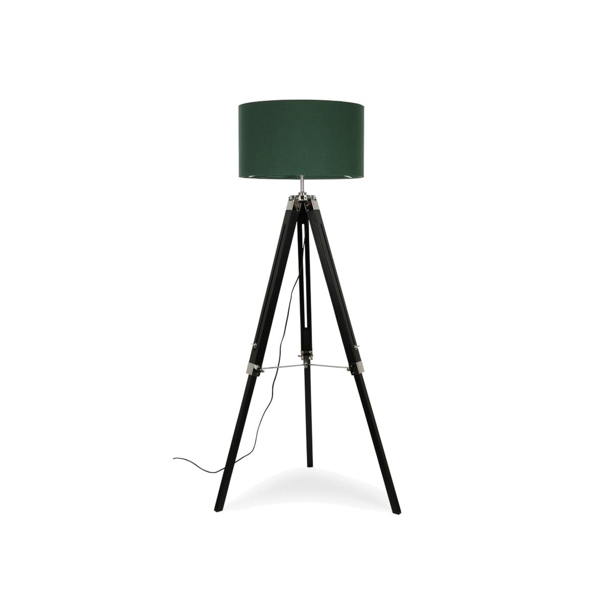 Rustic and versatile. You could welcome the Clipper black wood tripod floor lamp in any space and top it off with a pop of colour with the large Reni shade. With its classic design, this floor lamp slots into whichever space needs that little bit of extra brightness. The Clipper feels at home in a whole load of different-styled homes, whether youre building a modern home, a classic home or an industrial-inspired home. The rustic base is perfect for adding a timeless, modern touch to your decor without overpowering it. The lamp base has a diameter of 72 cm and a height of 128cm when fully assembled. Requires one 6W LED ESE27 bulb. It also features a large Reni shade in forest green (with a height of 25cm and a diameter of 45cm). It is fitted with an inline switch, so it is user-friendly!