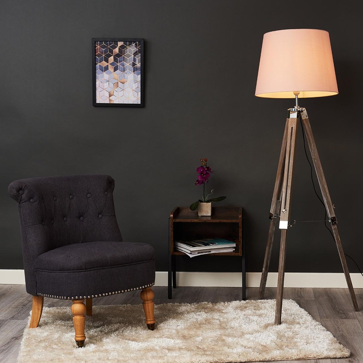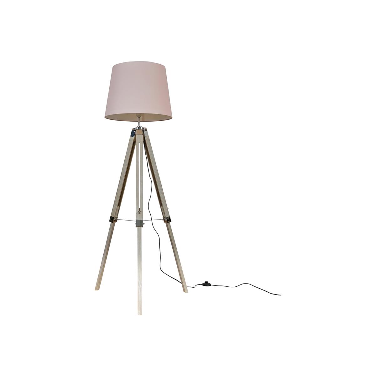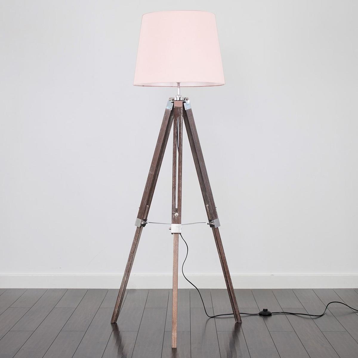 Modern tripod style floor lamp in a distressed wood effect and silver chrome finish, which features an in-line onoff switch for easy use. Complete with an extra large pink tapered shaped light shade. Floor lamps are a great way to bring additional lighting to a room or you can use them reduce your main light output, and create a more relaxing moodatmosphere. An instant update, you can change your room style in seconds.