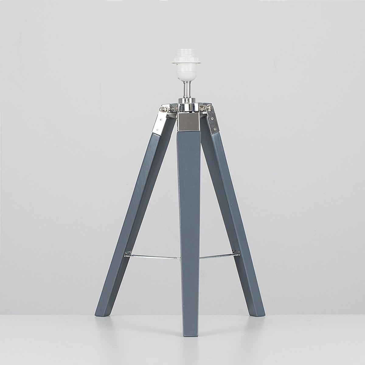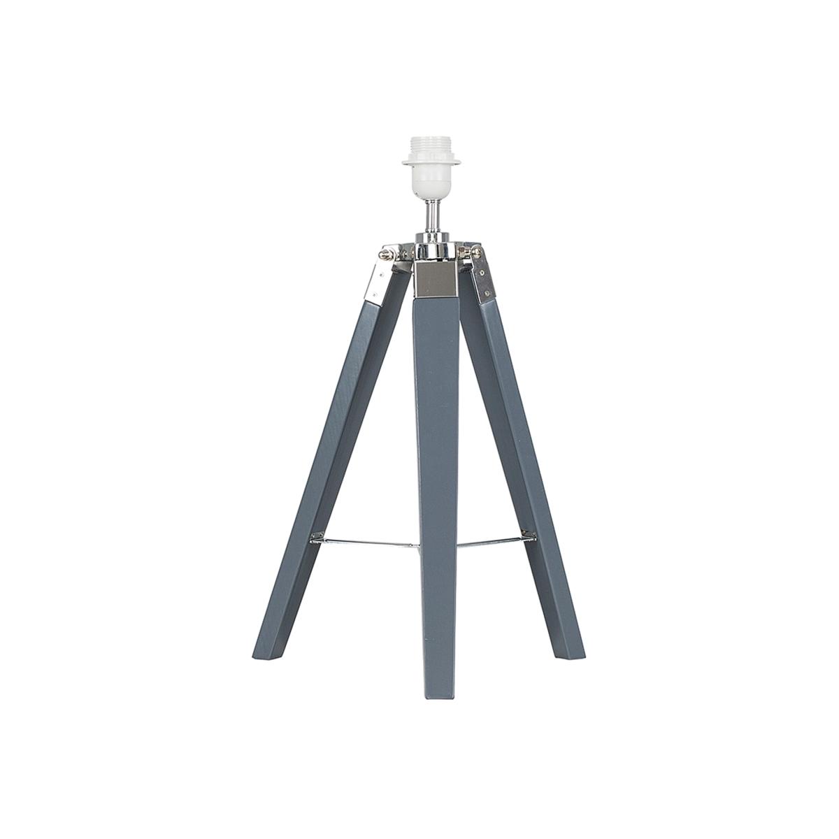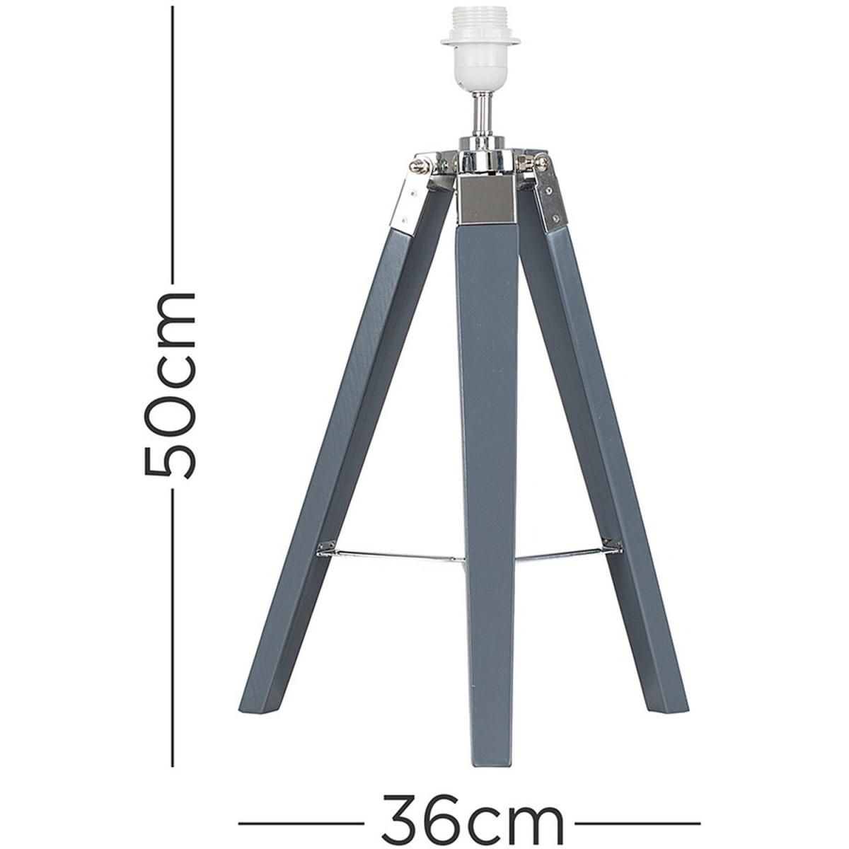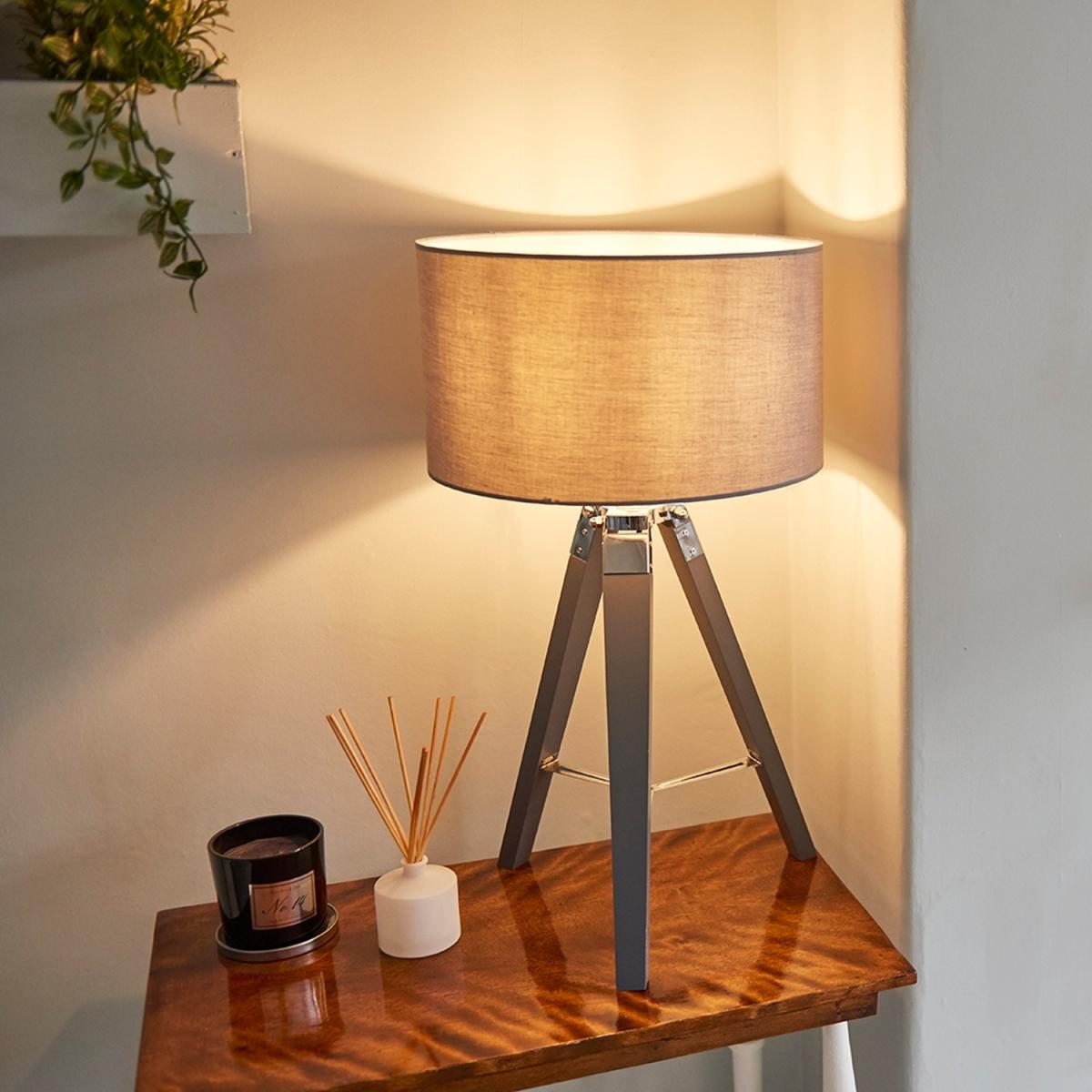 Modern tripod style table lamp base in a grey wood effect and silver chrome finish, which features an in-line onoff switch for easy use. Table lamps are a great way to bring additional lighting to a room or you can use them reduce your main light output, and create a more relaxing moodatmosphere. An instant update, you can change your room style in seconds. Lamp base only - pair with a shade of your choice.