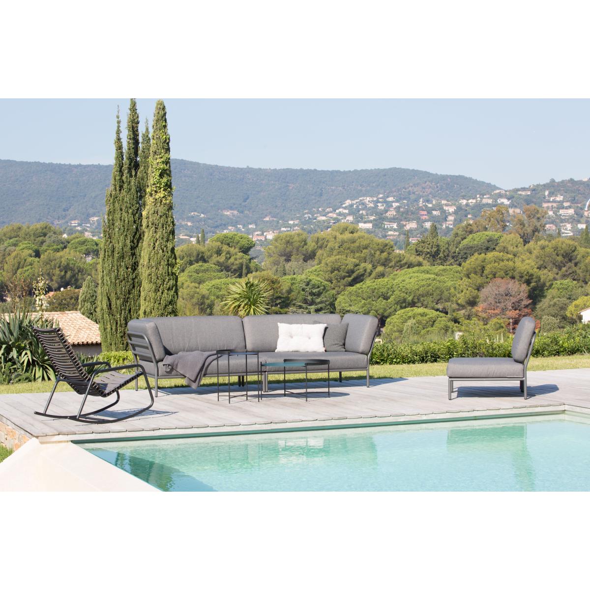 Clips is a line of seats for outdoors and in, created by Danish designer Henrik Pedersen. Armchair, rocking chair, stool: the entire range is designed to make your living space pleasant, solid and elegant. This rocking chair has a soft, rounded silhouette. Clips’ structure is formed from different materials which deliver up a harmonious, chic look. Its backrest and seat are made up of several plastic slats, while its structure and rockers are made of epoxy-lacquered aluminium, offering excellent weather resistance. Finally, Clips has bamboo armrests which add a warm, natural touch. Placed in your living room, bedroom or in your garden, this rocking chair lets you relax in perfect comfort.