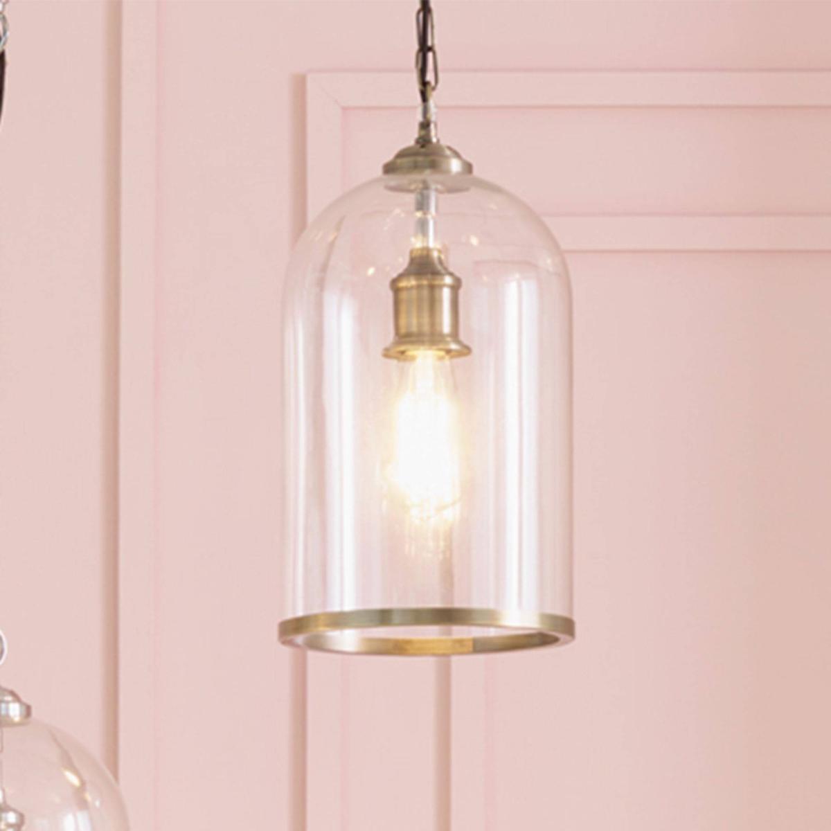 Add some classic charm to your home with this crisp, clear glass cloche pendant light. Make a statement with the Cloche Pendant Ceiling Light. Boasting a fashionable clear glass shade, this ceiling light is finished with antique brass metal trim and matching ceiling chain. Its modern styling and convenient adjustable drop make it ideal for placement above kitchen islands or dining tables in addition to the hallway and bedroom lighting. Pair this light with our 7w LED Coated or Clear bulb for a stylish, modern look or alternatively pick from our 4w LED Vintage bulbs for a rustic and industrial glow.