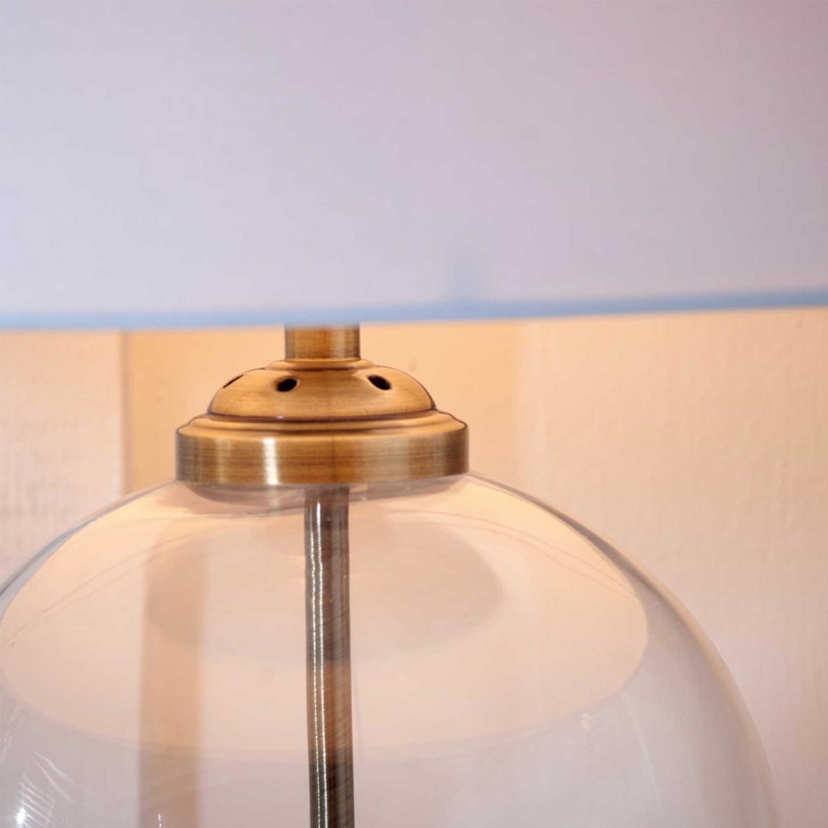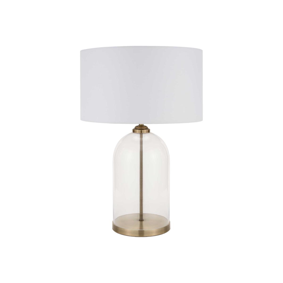 The Cloche Glass Table Lamp is an elegant feature in your home that will radiate style and light into your bedroom, dining room, or living area. The soft white linen shade has a natural colour that allows the lamp to emit light gently. The detailing of the lamp is finished in stunning antique brass creating a warmth and sophistication that will complement many decors. This versatile table lamp has a timeless design, looking beautiful placed on a side or console table or as a pair on beside tables.