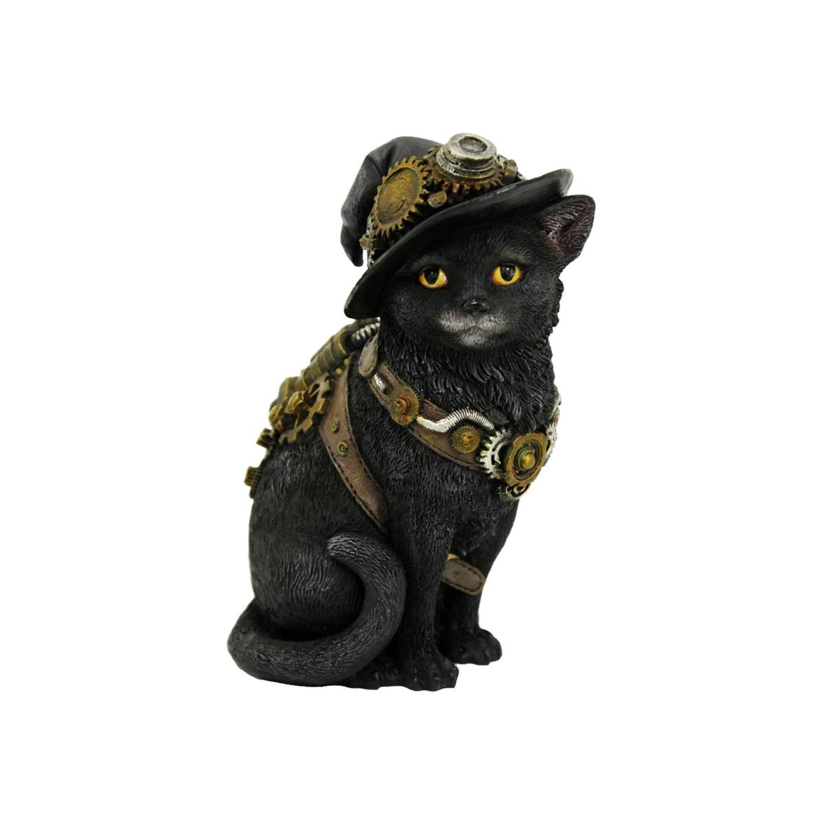 From Gothic brand Nemesis Now's giftware collection, this adorable clockwork kitty is the perfect companion to any inventor. Sitting up on its haunches, this black cat wears a brown leather harness, covered in cogs, clockwork and tubes. On their head, a black witch's hat perches precariously, tip folded over and clockwork affixed above the brim. The cat looks up at you with preternatural intelligence. Cast in high-quality resin before being carefully hand-painted, this clockwork kitty is a great gift for any Steampunk-loving witch.