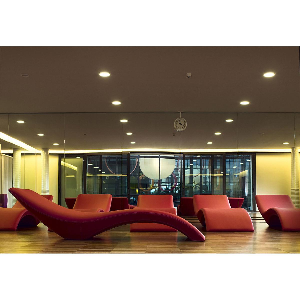 Ergonomic fixed sun lounge, having sinuous lines, manufactured in polyethylene and studied for the outdoors, resistant to water and UV rays.