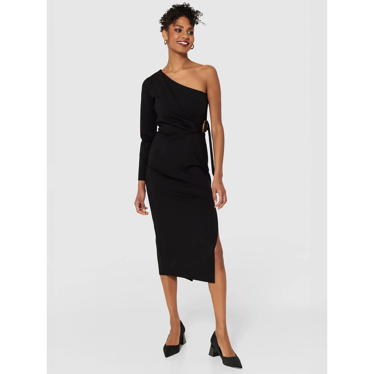 The Closet London One Shoulder Dress makes a bold statement with its sleek fabric and dramatic one-shoulder design.