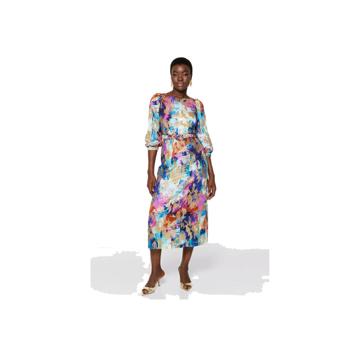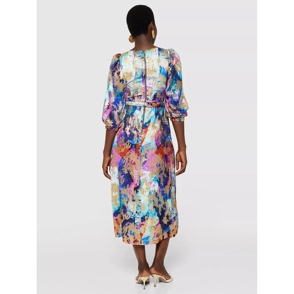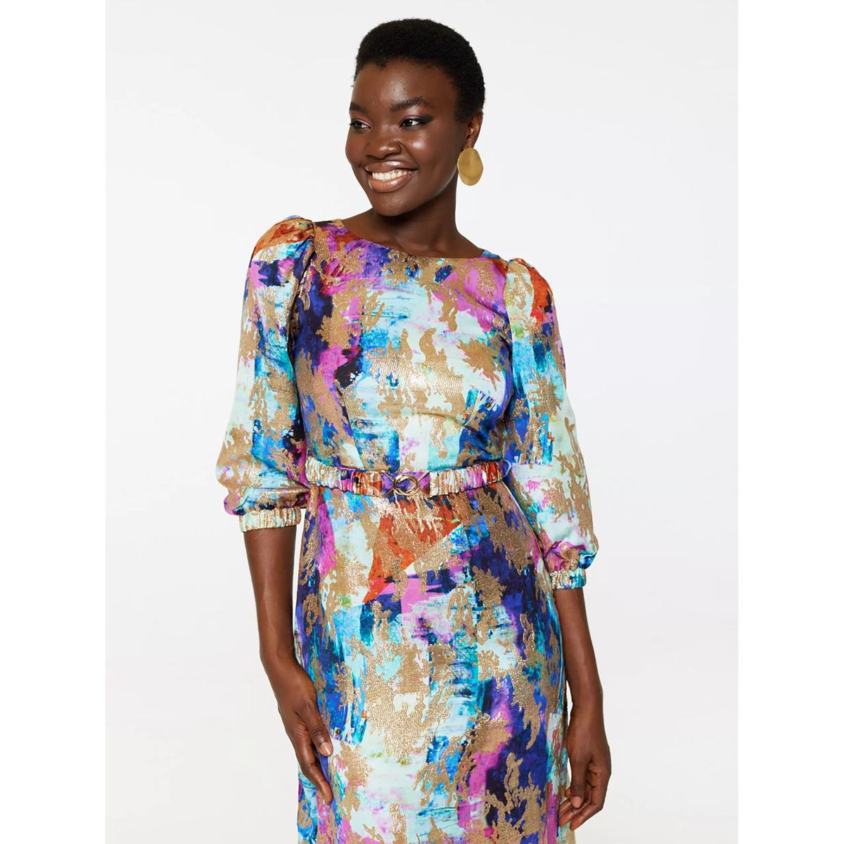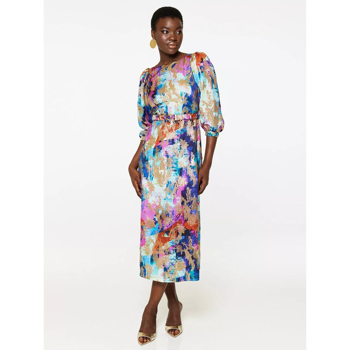 Closet London Metallic Brushstroke Print Puff Sleeve Dress, Blue/Multi