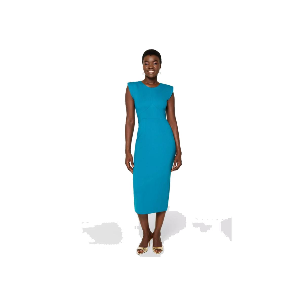 In a figure-forming pencil shape, this midi dress from Closet London is carved out with a crew neck, cap sleeves with shoulder pads and comes in a smooth fabric.