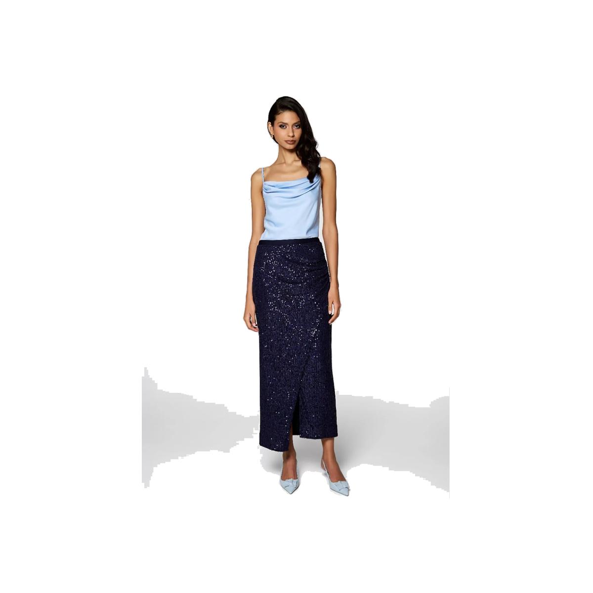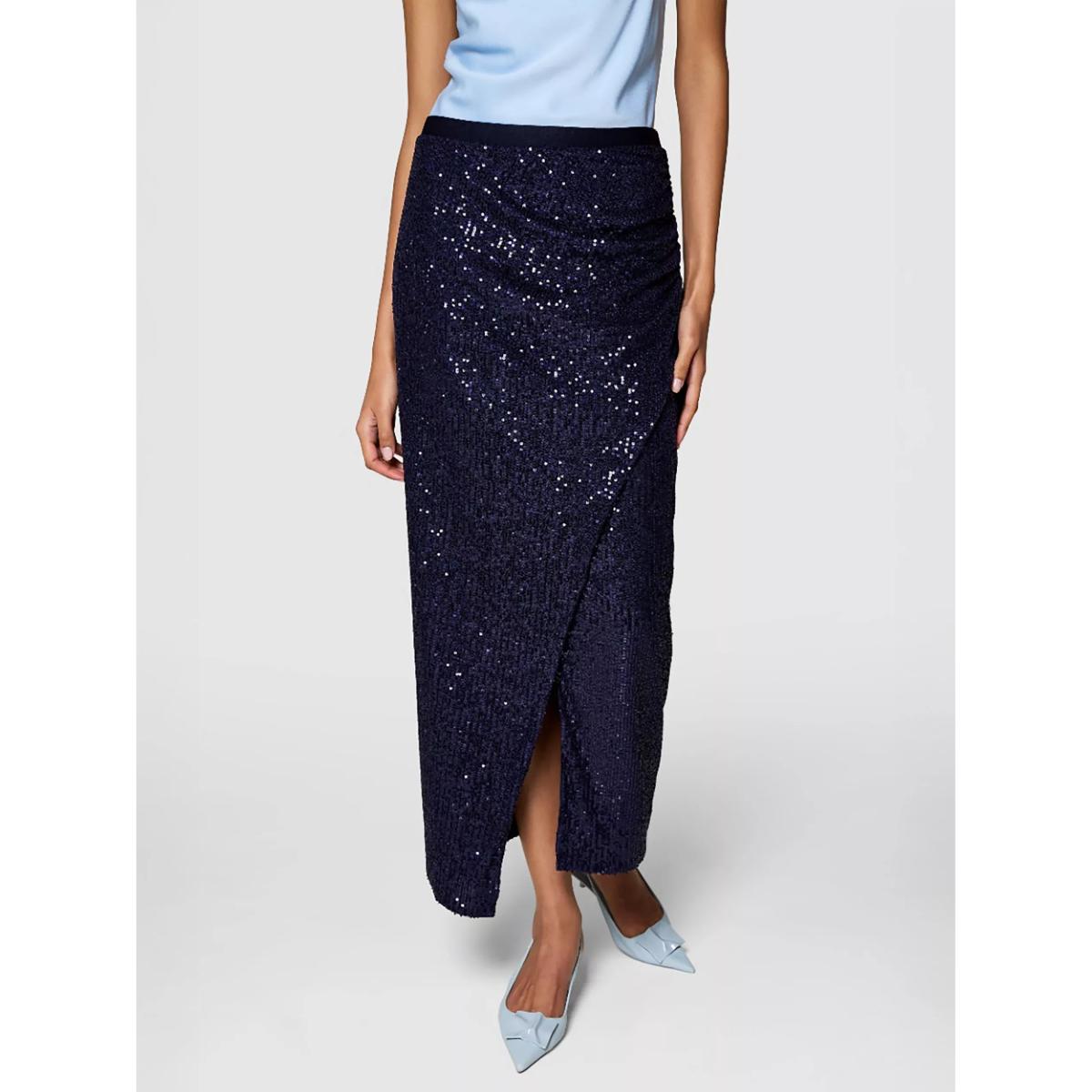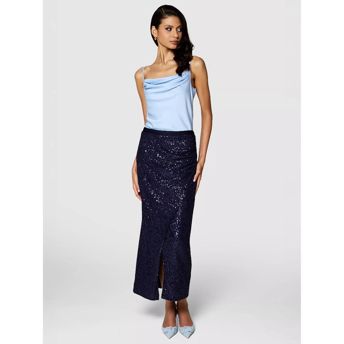 Dazzle in this Navy sequin wrap skirt from Closet London, featuring a flattering draped design and a front slit for a touch of elegance.