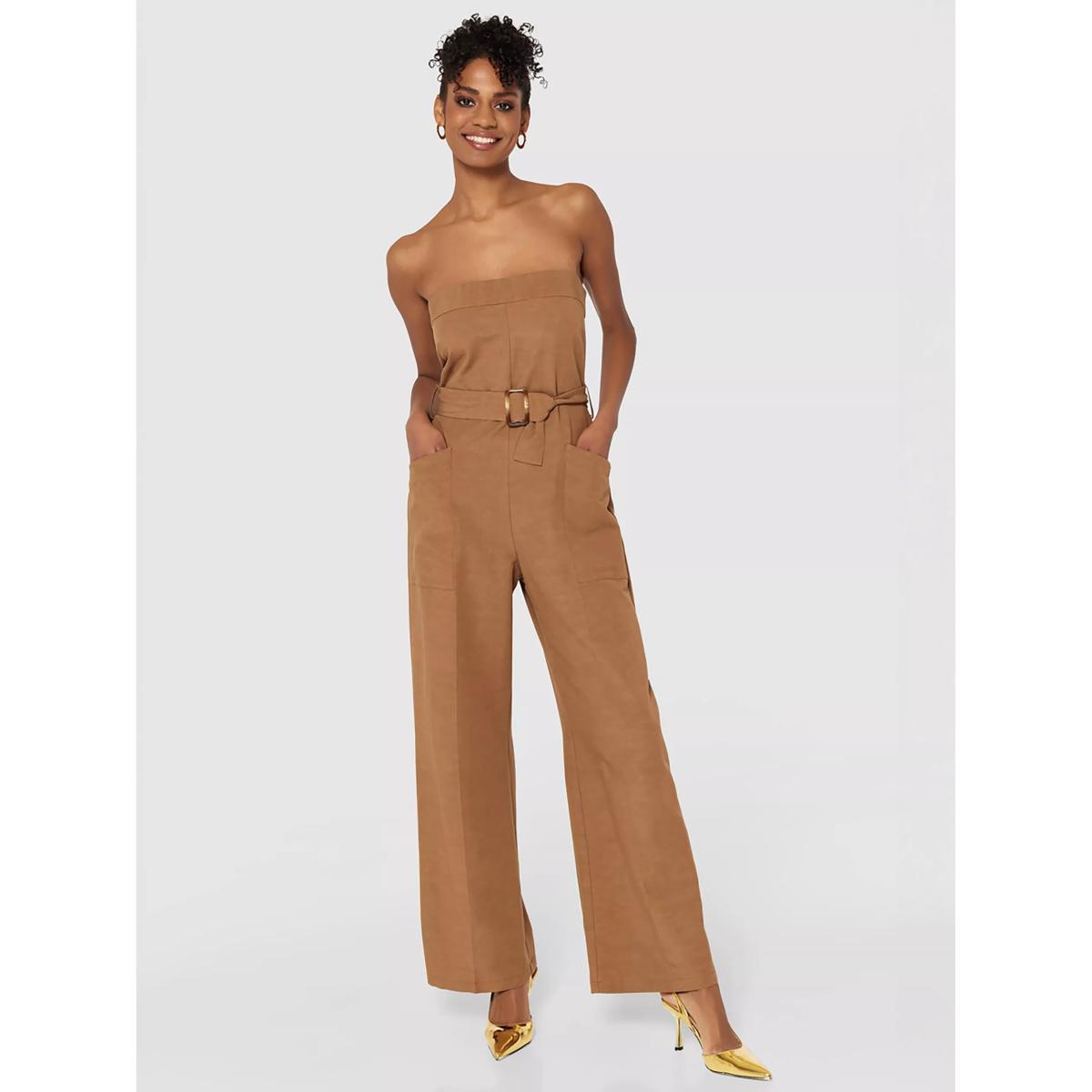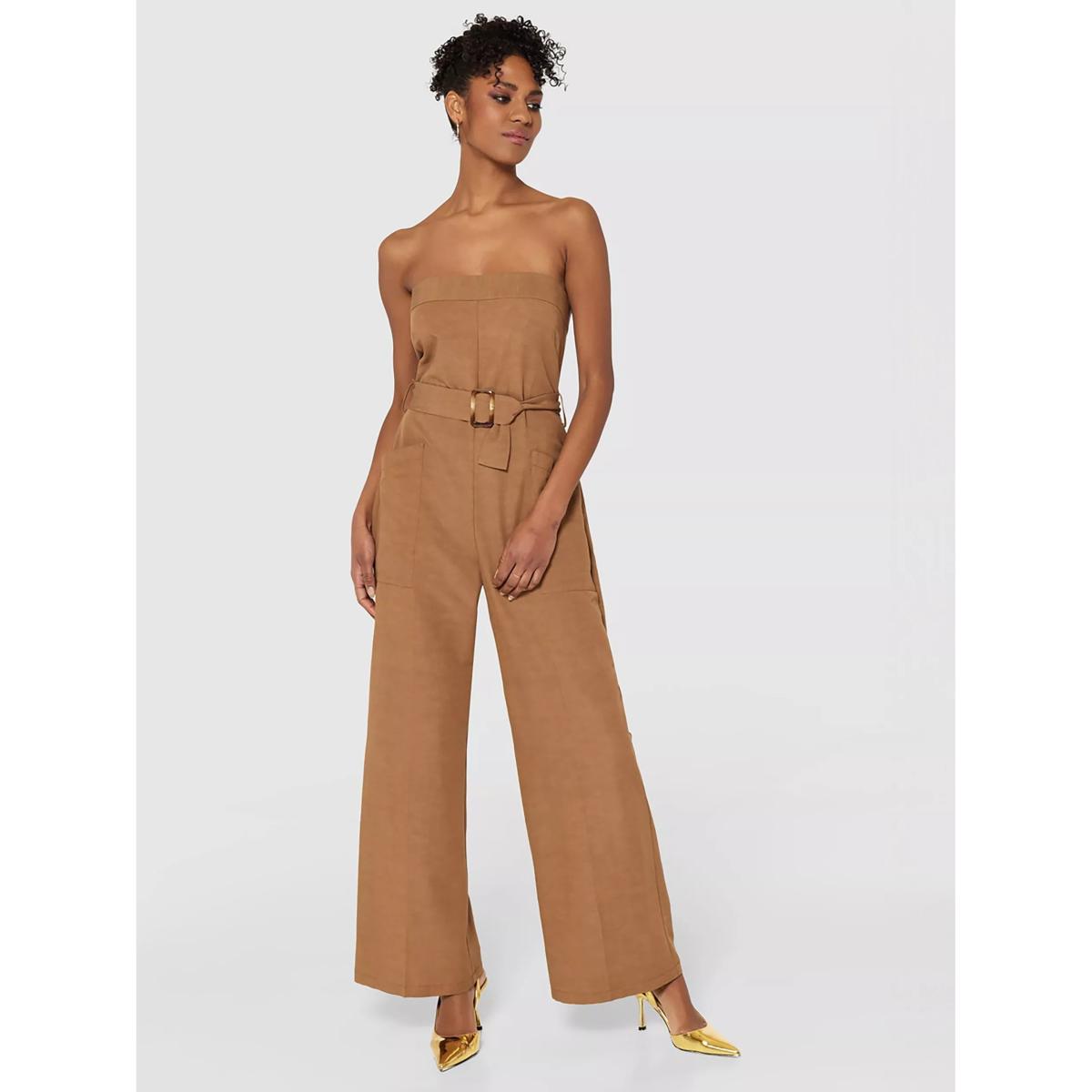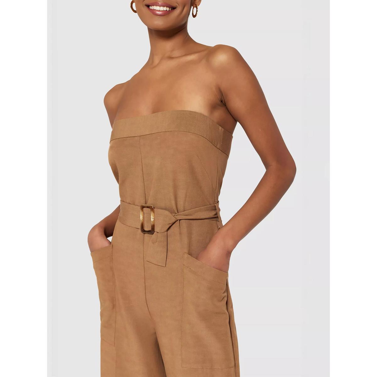 Closet London Strapless Linen Blend Jumpsuit, Light Brown