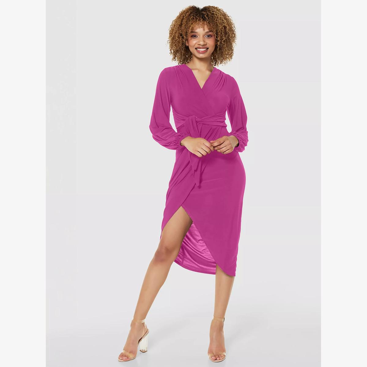 Feminine and chic, this wrap pencil dress from Closet London is perfect for a sophisticated look. The wrap design cinches at the waist to enhance your figure, while the soft hue adds a touch of elegance. Ideal for brunches, parties, or formal events.