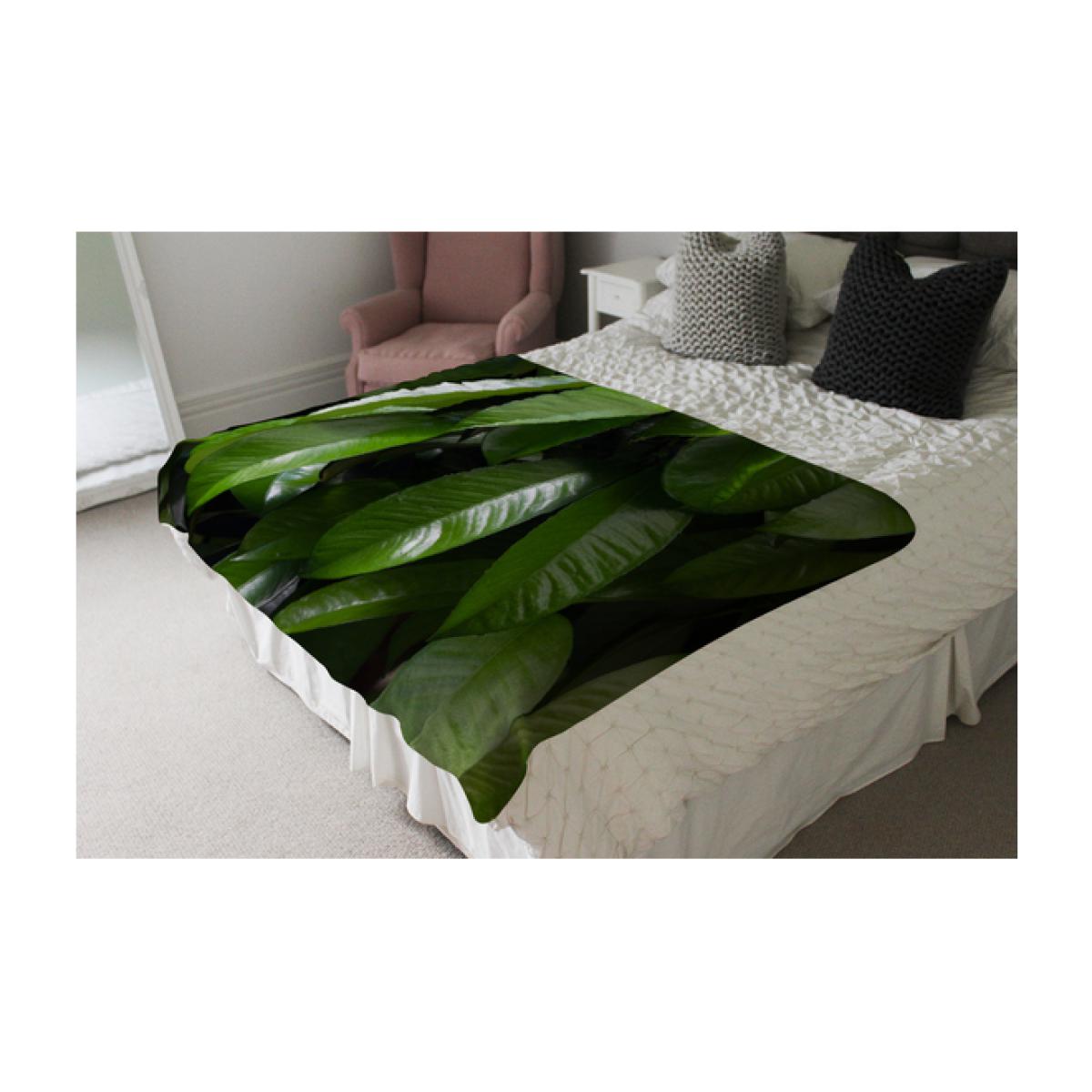 Closeup of Beautiful Glossy Green Leaves Designer Blanket - Green