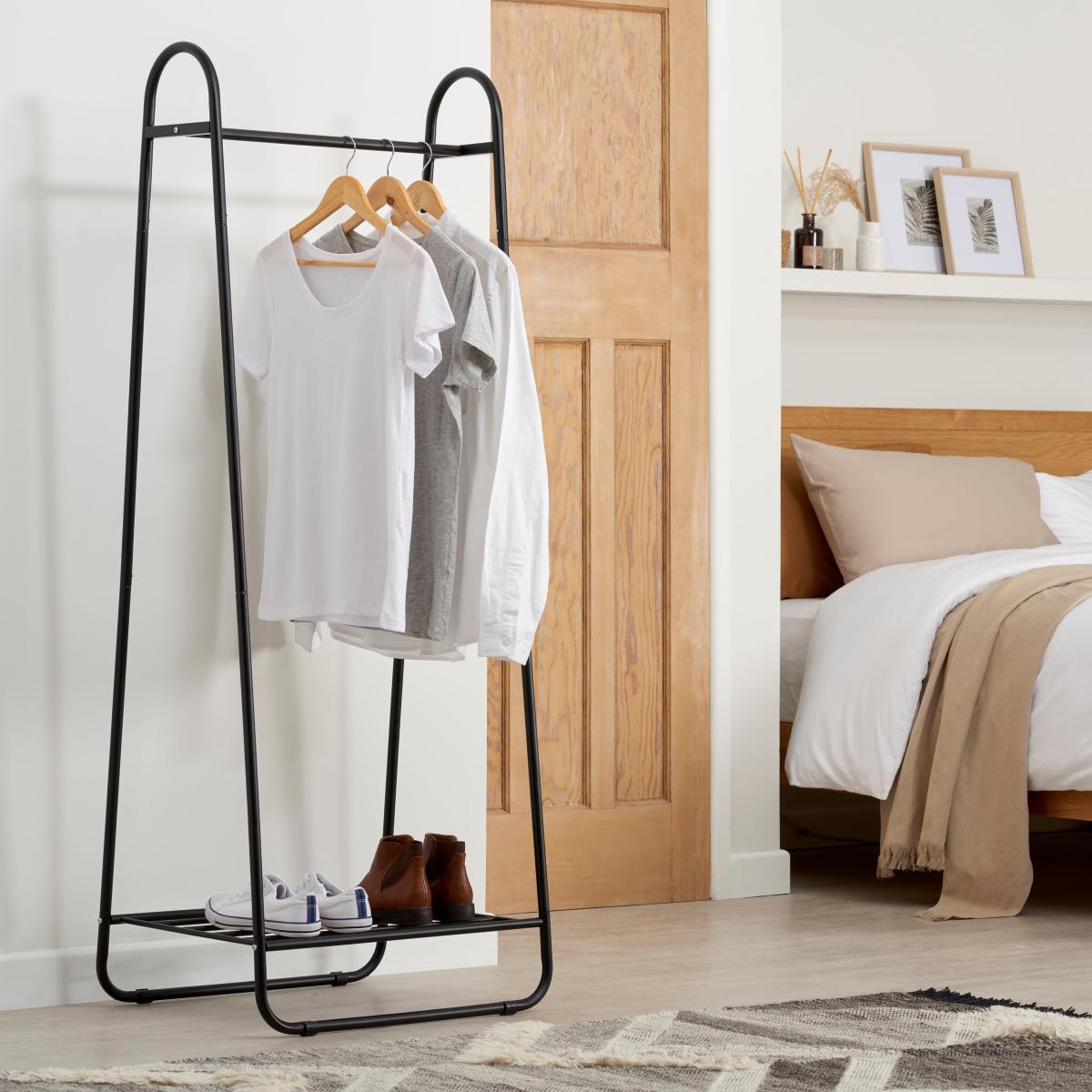 I really like the Clothes Rail with Storage Shelf in black because it combines functionality with a sleek, modern look that works well in a variety of interiors. It’s especially great for bedrooms with limited wardrobe space or for creating a relaxed, boutique feel. I’d recommend styling it with a mix of casual items like favourite t-shirts, shirts, or even accessories on the hanging rail, while the shelf underneath is perfect for shoes, baskets, or folded essentials. In contemporary or minimalist spaces, its simple black frame adds a subtle contrast, but it can also blend seamlessly in industrial, Scandinavian, or even eclectic interiors. Practical tip: use the shelf to keep everyday items within easy reach and free up drawer space, making it a chic, multi-purpose storage solution.