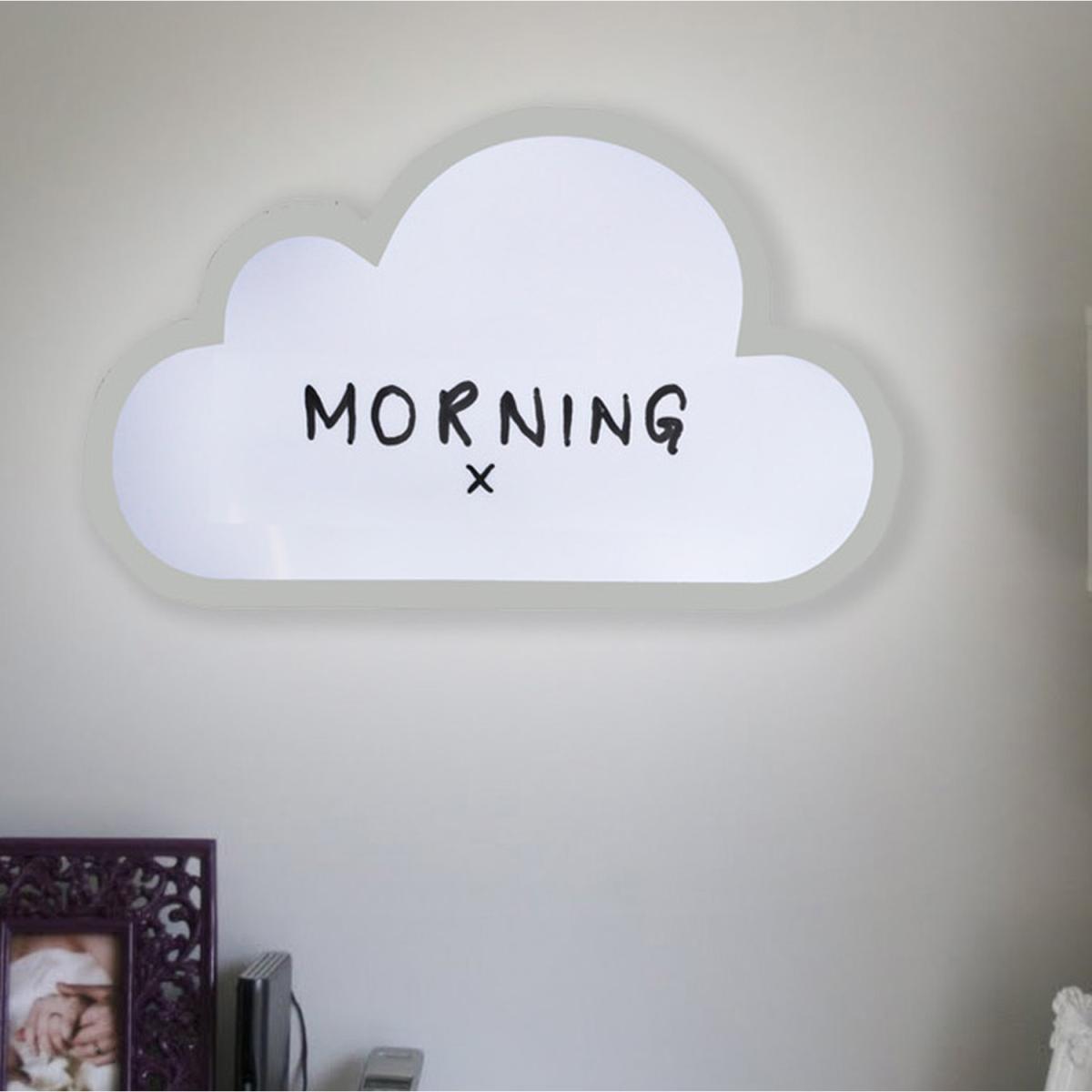 Cute cloud shaped whiteboard lights up when supplied with 3 AA Batteries to illuminate your message and the surroundings. Easily written on and wipeable with any compatible quality dry-wipe whiteboard marker & eraser