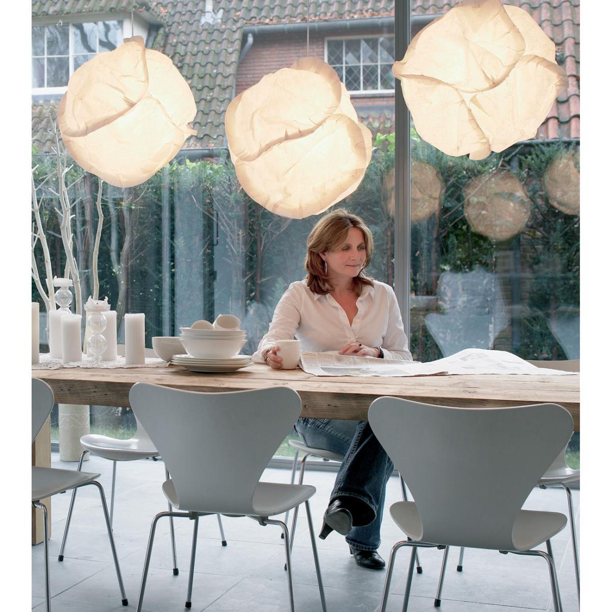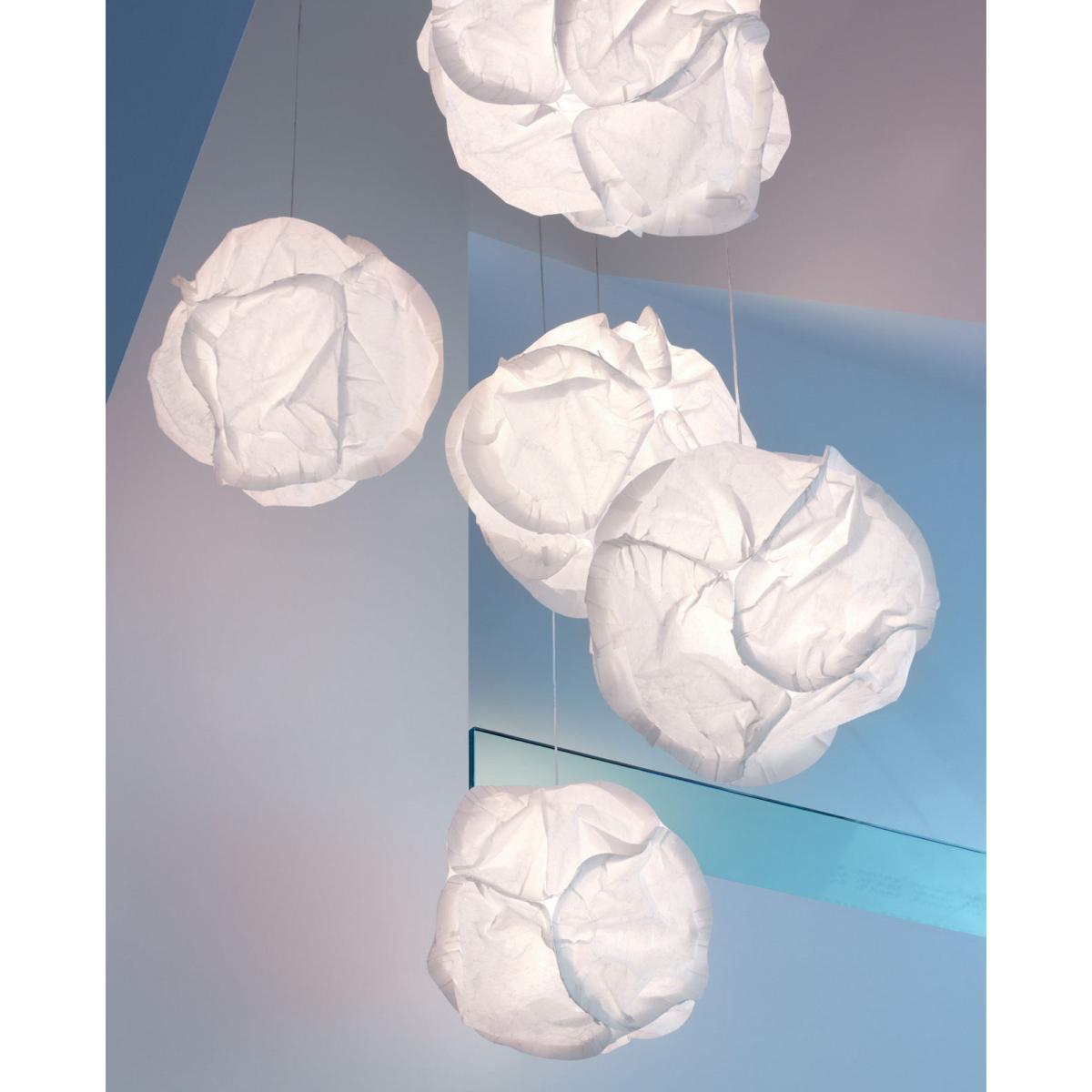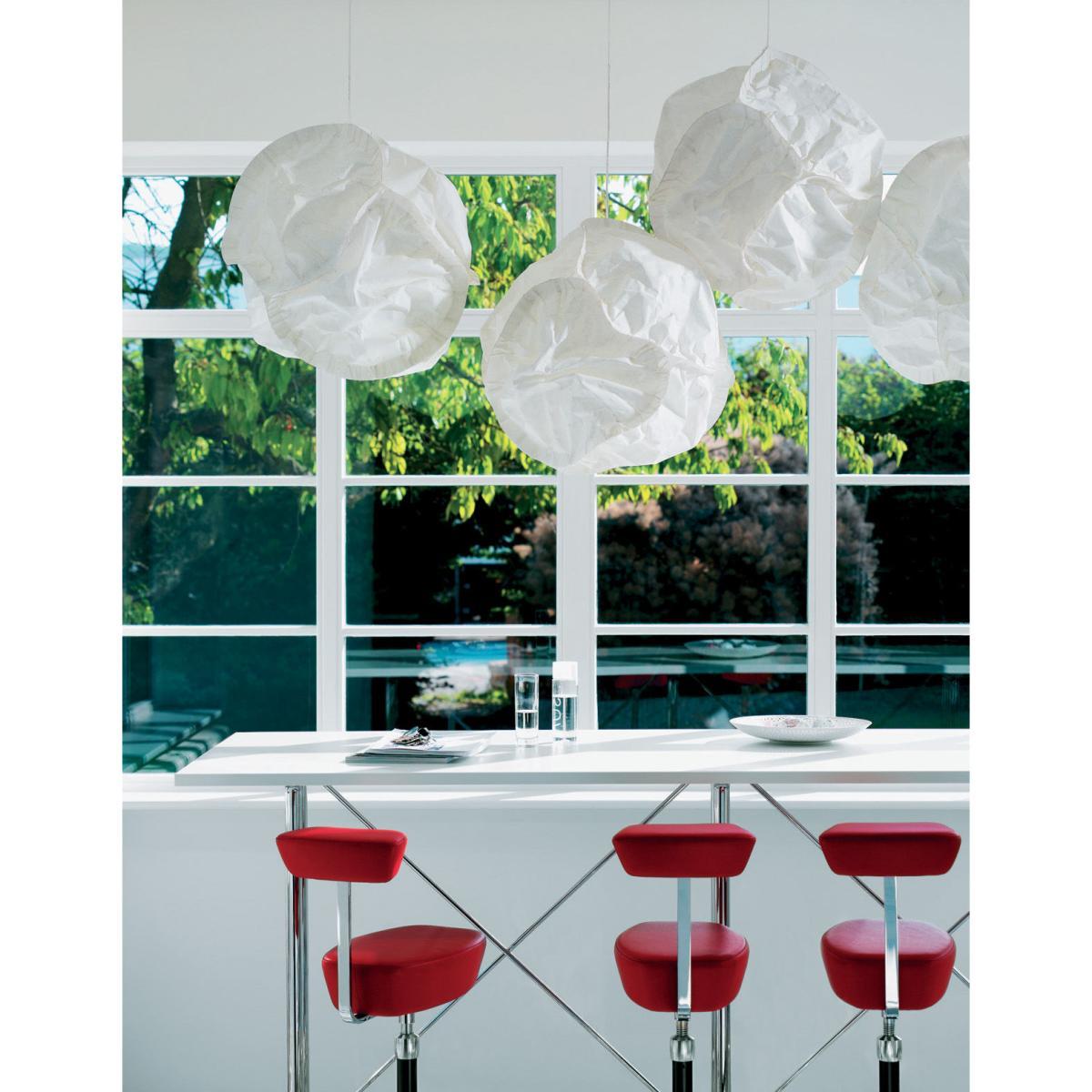BELUX presents CLOUD, the first lamp designed for serial production by master architect Frank O. Gehry. As both a sculptural lamp and a lamp sculpture, CLOUD is a design concept in which the user becomes co-designer. The design is convincing because of its uncommonly poetic and richly associative visual language, its simple construction and its many applications. The lamps are available in various sizes and models, such as hanging, standing, floor and table lamps. Each lamp has a voluminous yet delicate paper-like shade, in the centre of which is the invisible light source. With its irregular sculptural shape, marked by countless folds, crimps, bulges and dents, it suggests a fleecy CLOUD and then again a large, soft snowball. Looked at more closely, the lampshade consists of several interlinked cup-like elements. Each lamp has an individual note in spite of all lamps having the same structure and the same predetermined shape. The idea is that the fold structure of the shade, which is shaped more or less by accident during production, can be changed by bulging it out or pressing it in. In doing so, Gehry makes users into co-designers who can repeatedly change the shape of the lamp if they so wish. After comprehensive tests, a multiply refined polyester material was developed, which feels and looks like strong fibrous paper. Flexible, tear-free, flame-resistant and aging resistant, this material is easy to clean and therefore ideal for CLOUD.