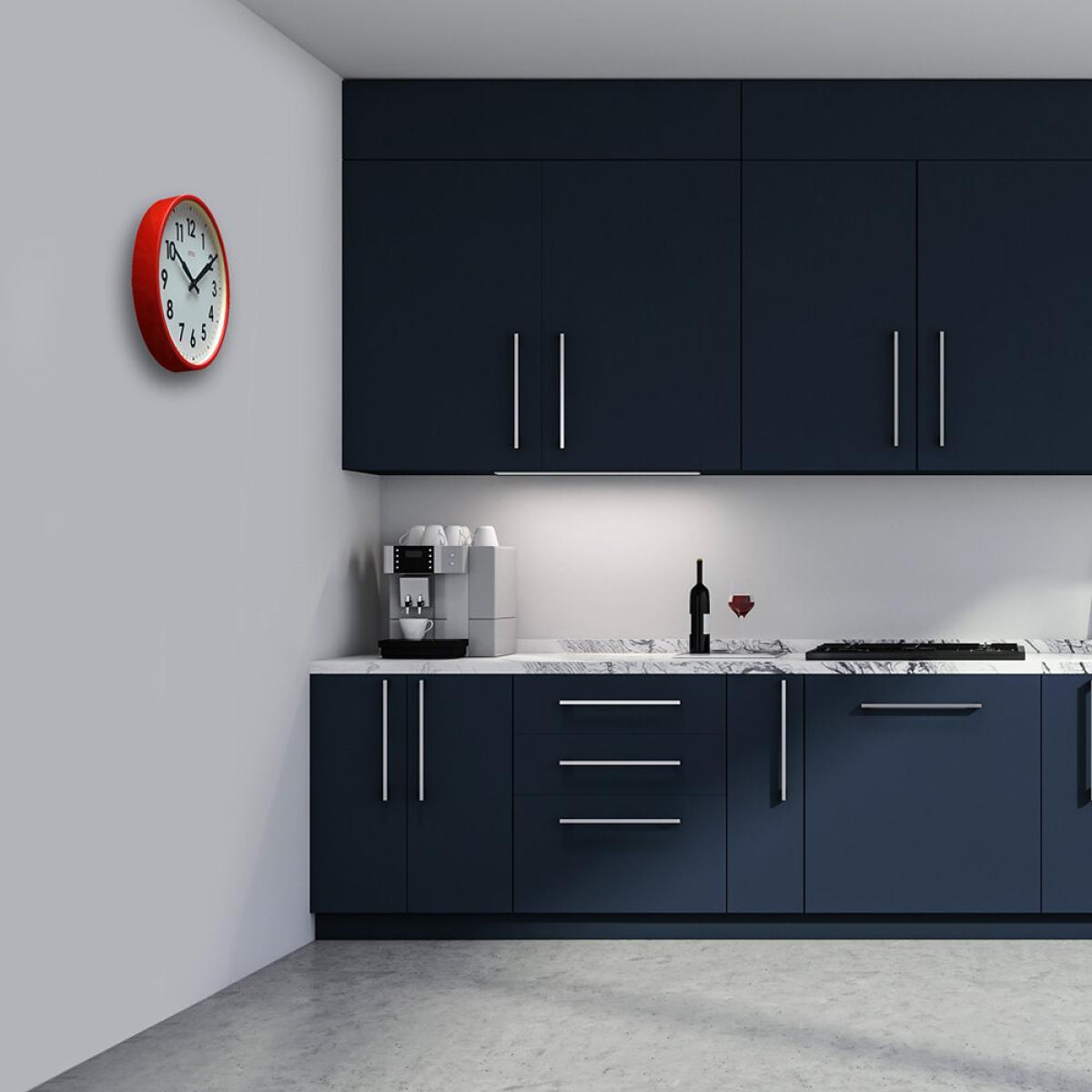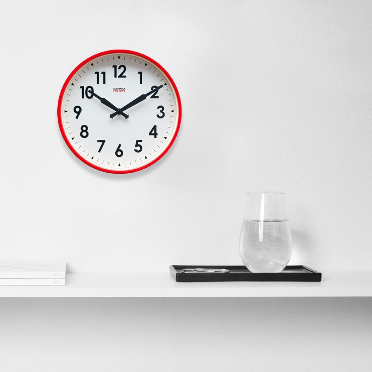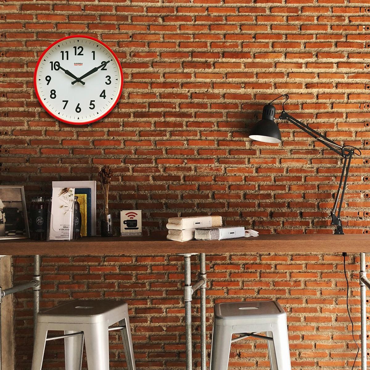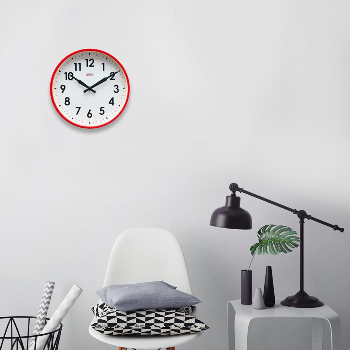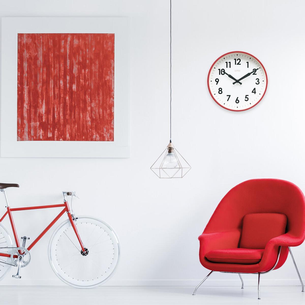 I love this clock’s bold red frame and classic design - it makes a statement without overwhelming the space. It works particularly well in contemporary or industrial interiors, where its functional yet stylish look complements minimal wood, metal, or concrete finishes. For practical styling tips, try placing it above a kitchen worktop, in a home office, or in a casual living space paired with other bold accessories for a cohesive look. Its clear, legible numerals also make it ideal for busy areas where easy time-telling is essential. Overall, this piece adds a pop of colour and a sense of organised energy to any room.