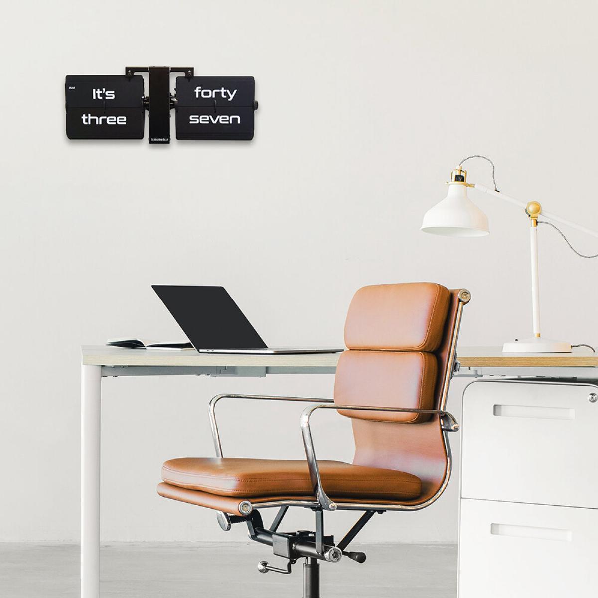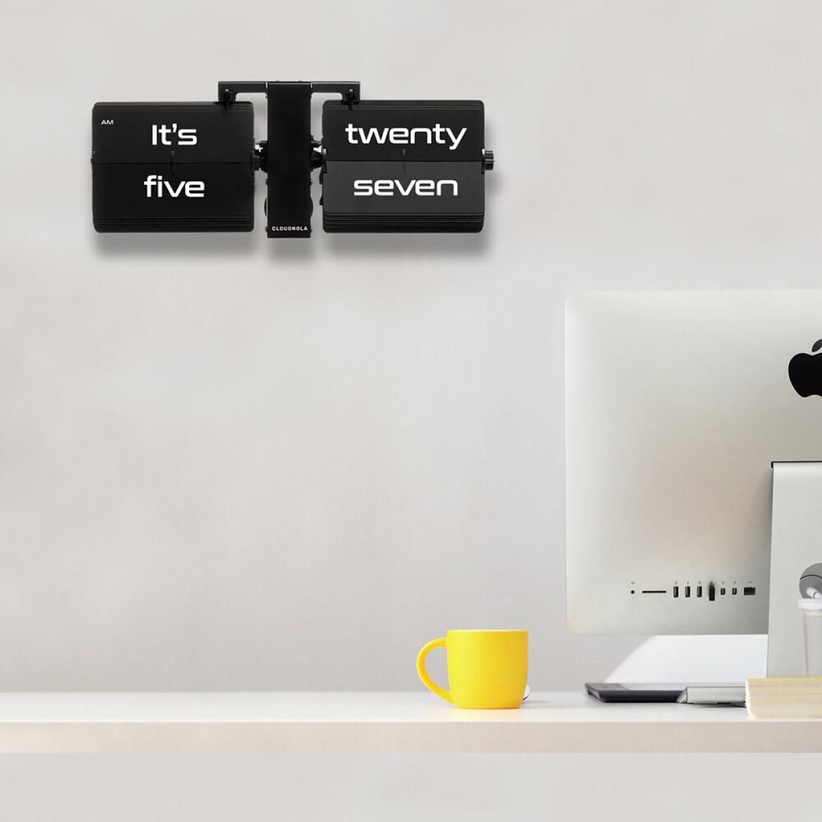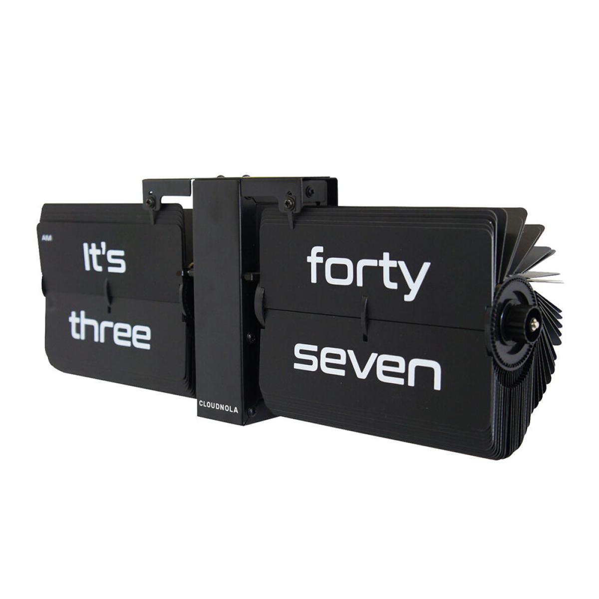 Tell the time in style with this Flipping Out Text clock from Cloudnola. A must-have for any home, this sleek design features a flip mechanism which displays time in text form. Modern and versatile, it can be hung on the wall or used as a mantel clock. Key features: * Material: steel * Dimensions: 14x36x8.5cm * Black colour * Modern text display * Flip mechanism * Designed by Renée Vendrig * Battery required 1. D (not included)