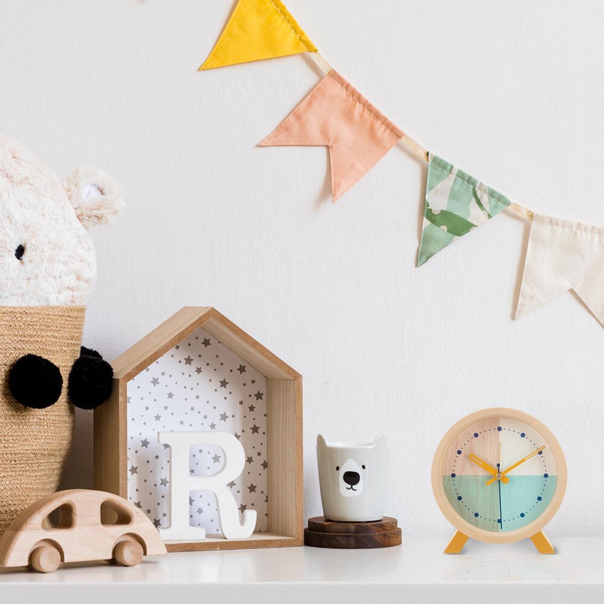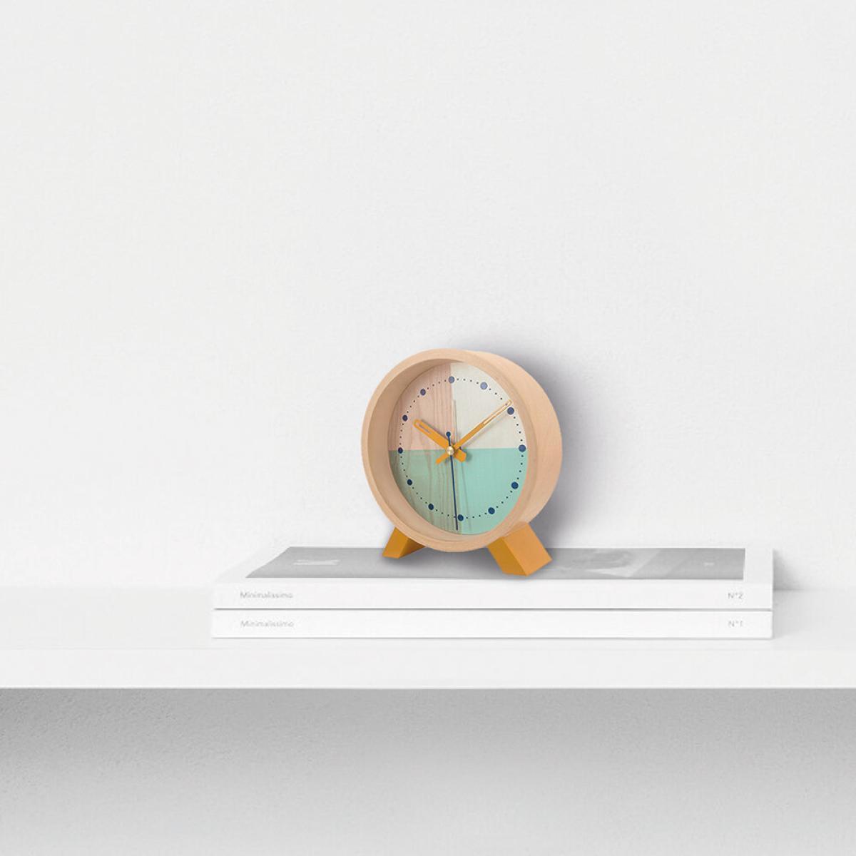 I love this turquoise clock for its playful yet minimal design, making it a versatile piece that adds colour without overwhelming a space. It works particularly well in modern or Scandinavian interiors, where clean lines and subtle pops of colour are key. For styling tips, place it on a mantel or side table in a living room to create a focal point, or integrate it into a desk setup for a charming timeteller that keeps things cheerful. Its soft colour palette complements neutral tones beautifully, and its compact size makes it ideal for smaller spaces or shelves where it can serve both function and decorative purpose.