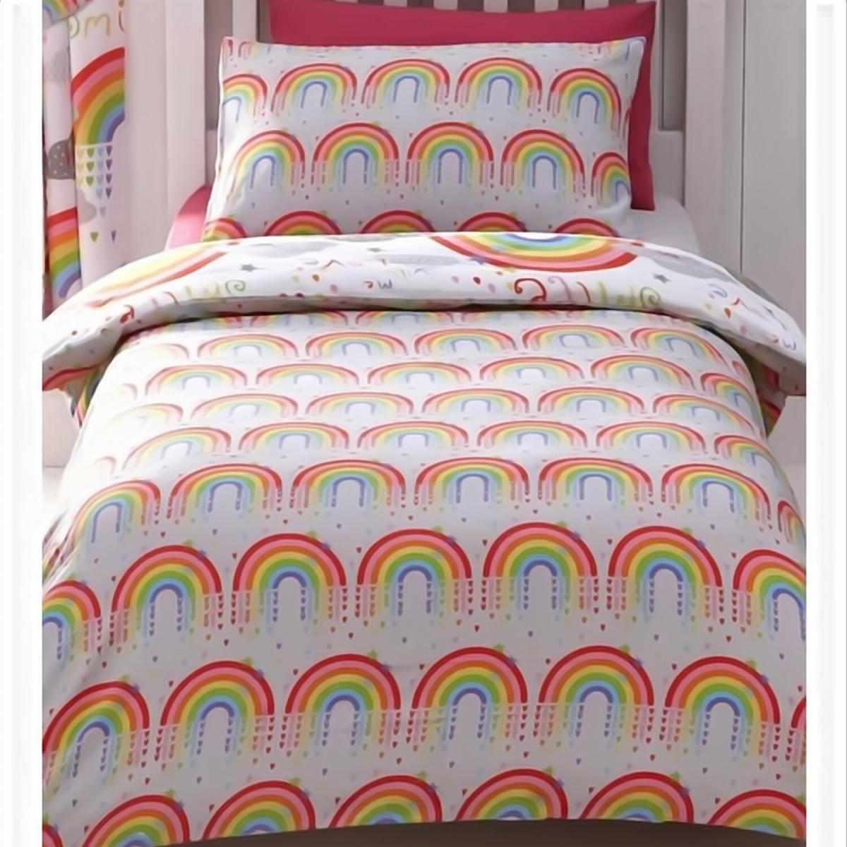 I love this duvet set for its bright, cheerful design that instantly lifts a child's room. It works well in playful, colourful interiors or as a fun focal point in more neutral spaces. To style it effectively, consider pairing it with coordinating pastel accessories or simple white furniture to let the vibrant rainbows and clouds take centre stage. For practical tips, opt for plain coloured bedsheets underneath to avoid clashing patterns and keep the look balanced. This duvet set is a great choice for creating a lively, inviting space that feels both playful and cosy.