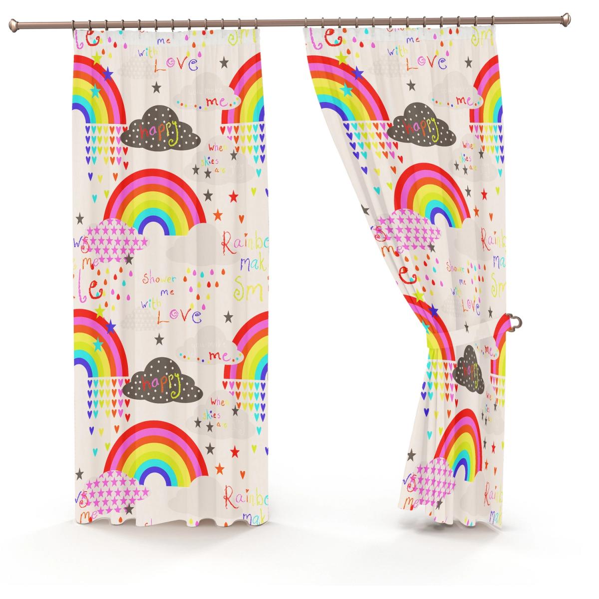Clouds and Rainbows Pencil Pleat Curtains - Blue / 54cm