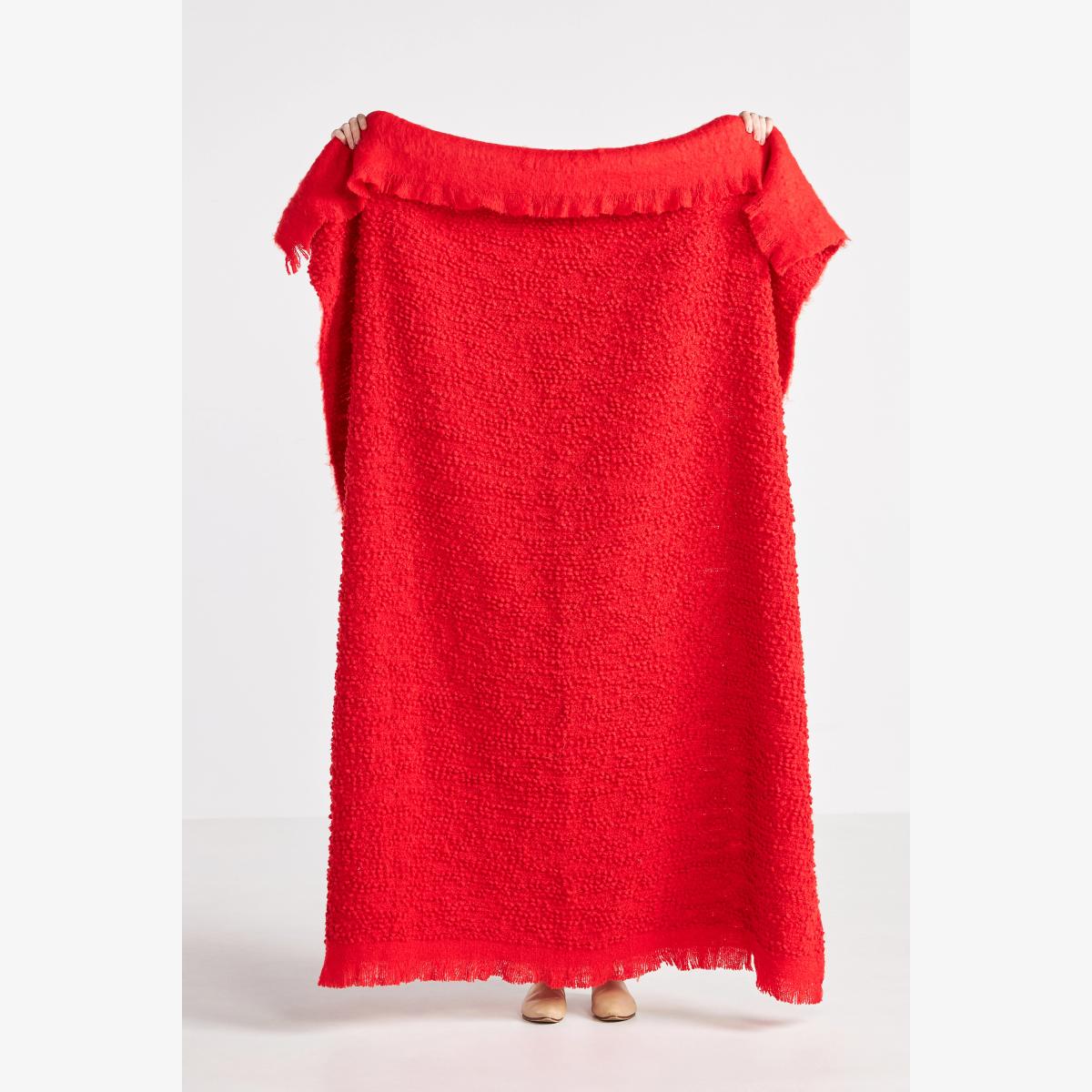 Made from soft bouclé with fringed trim detailing, this throw blanket offers a textured and cosy feel to any space. Cloudy Bouclé Throw Blanket by Anthropologie in Red